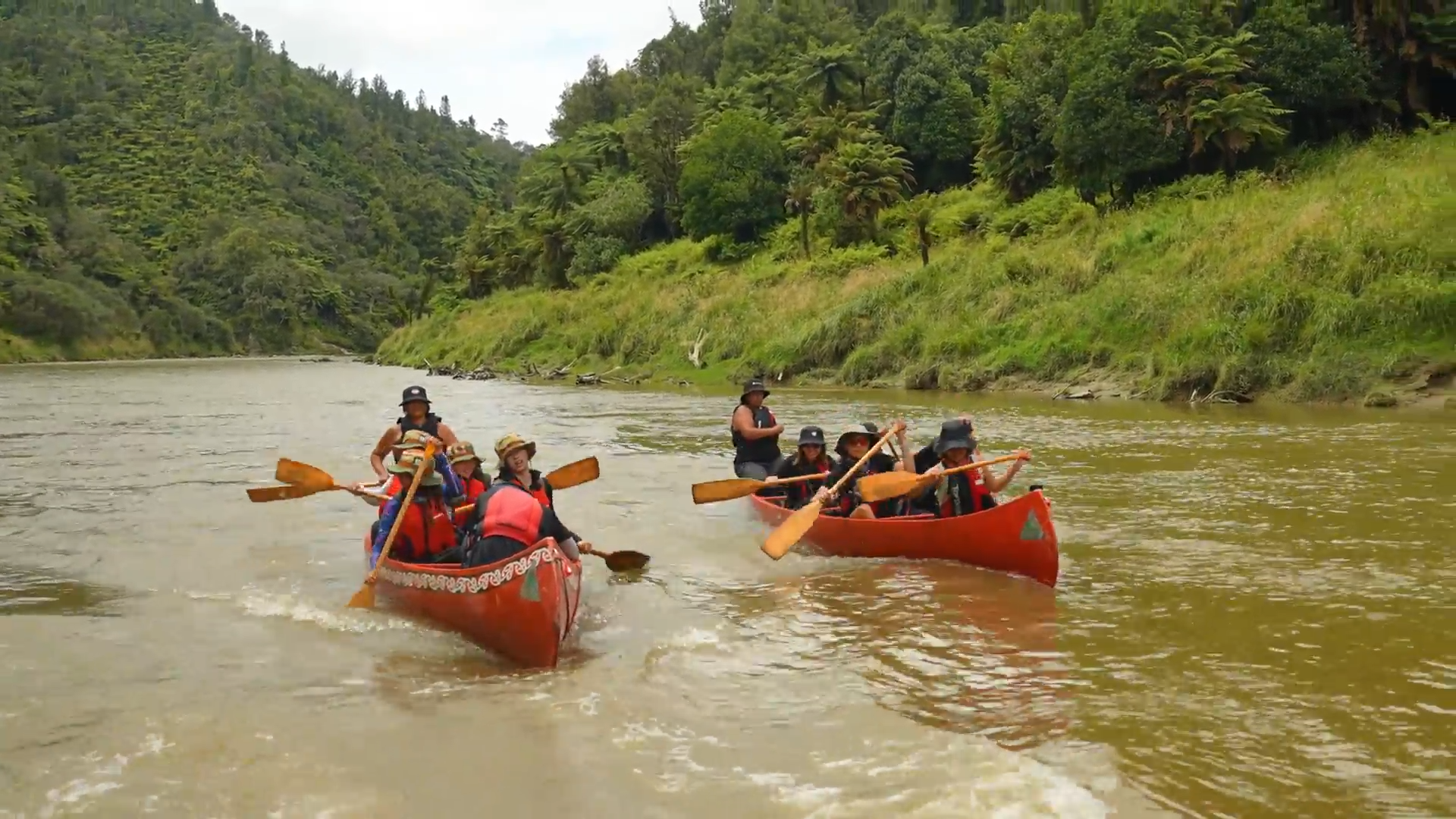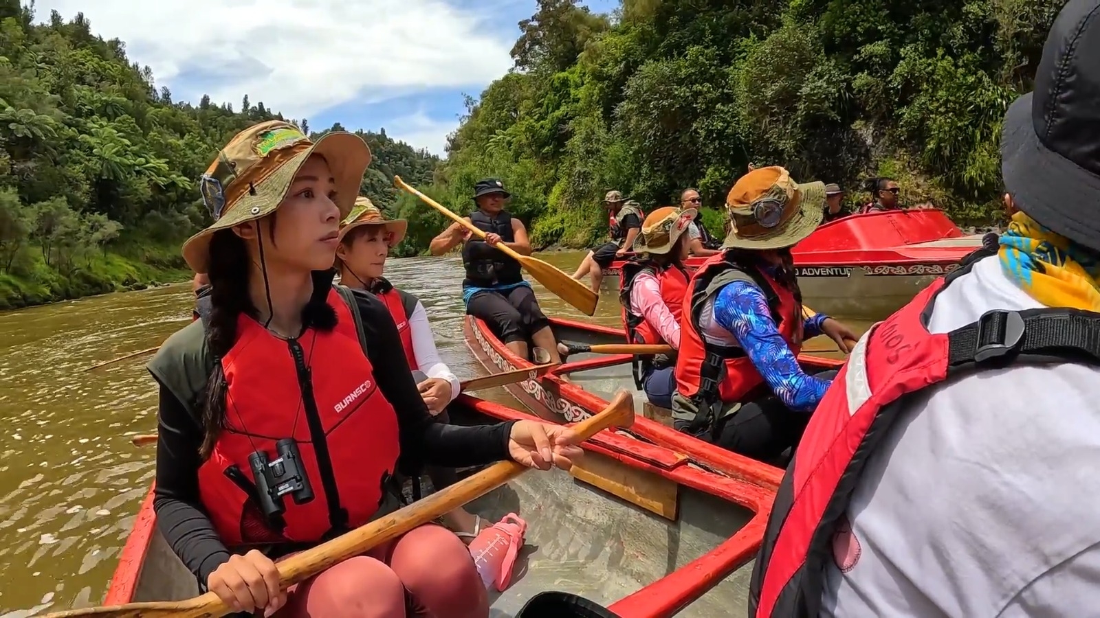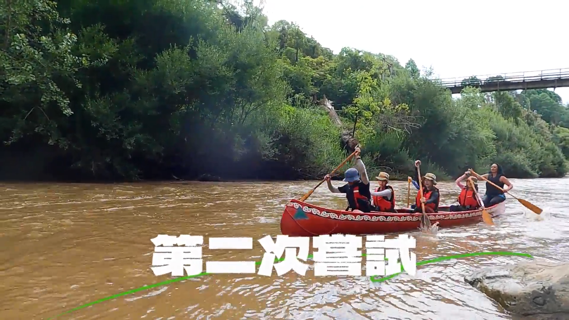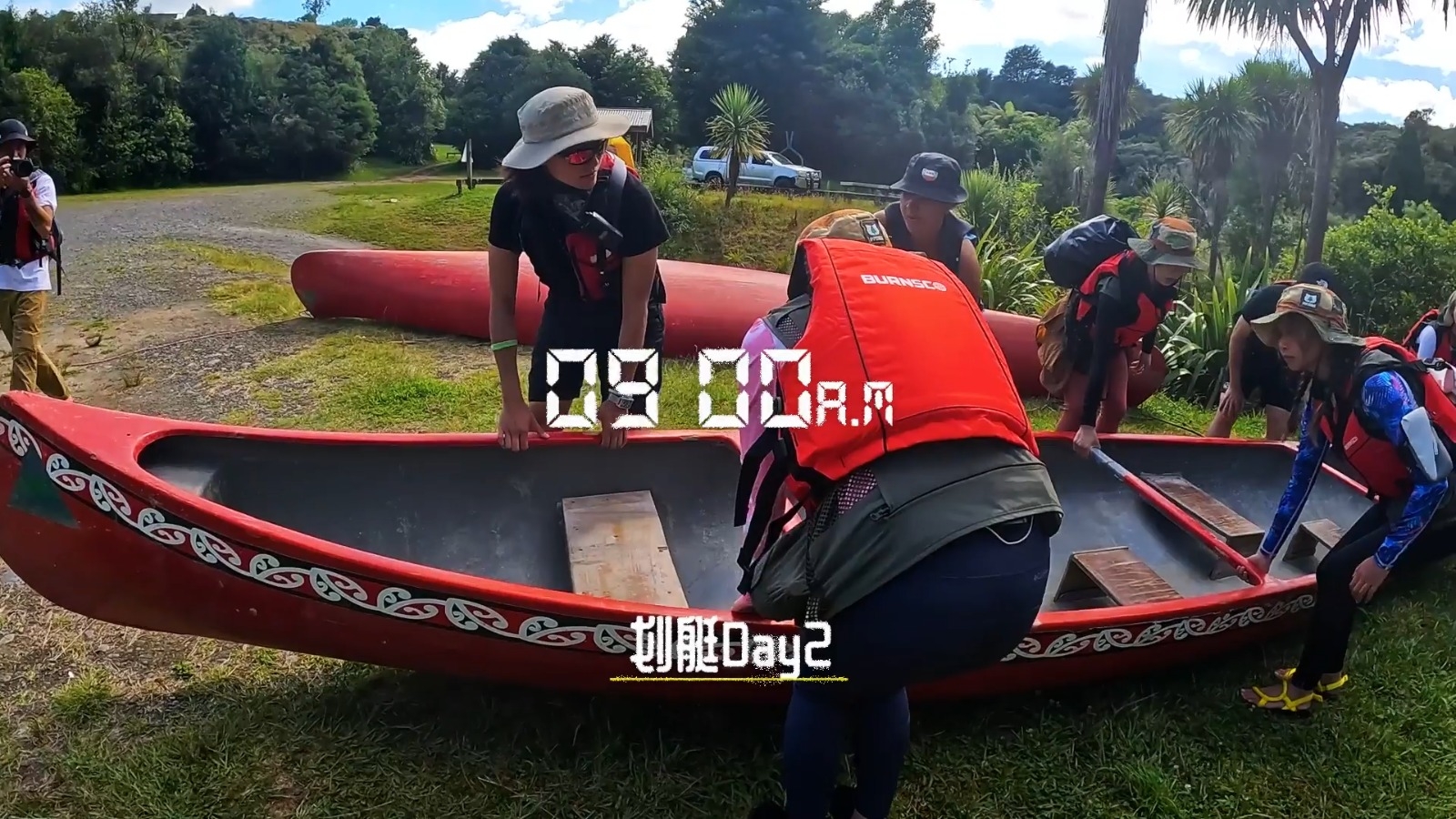 由於之前落大雨,為了安全考量,所以大家決定由原定的57km,變成划35km,即由campsite划到Whatahoro,預計所需時間為6小時。今次用的艇非常重,要集10人之力才能搬動,但過程都相當辛苦。最後在河川守護者Willi主持落河儀式後,眾人正式出發!Jessica邊划邊說,其實艇有浪推着,可以不太用力划也會前進。![]()