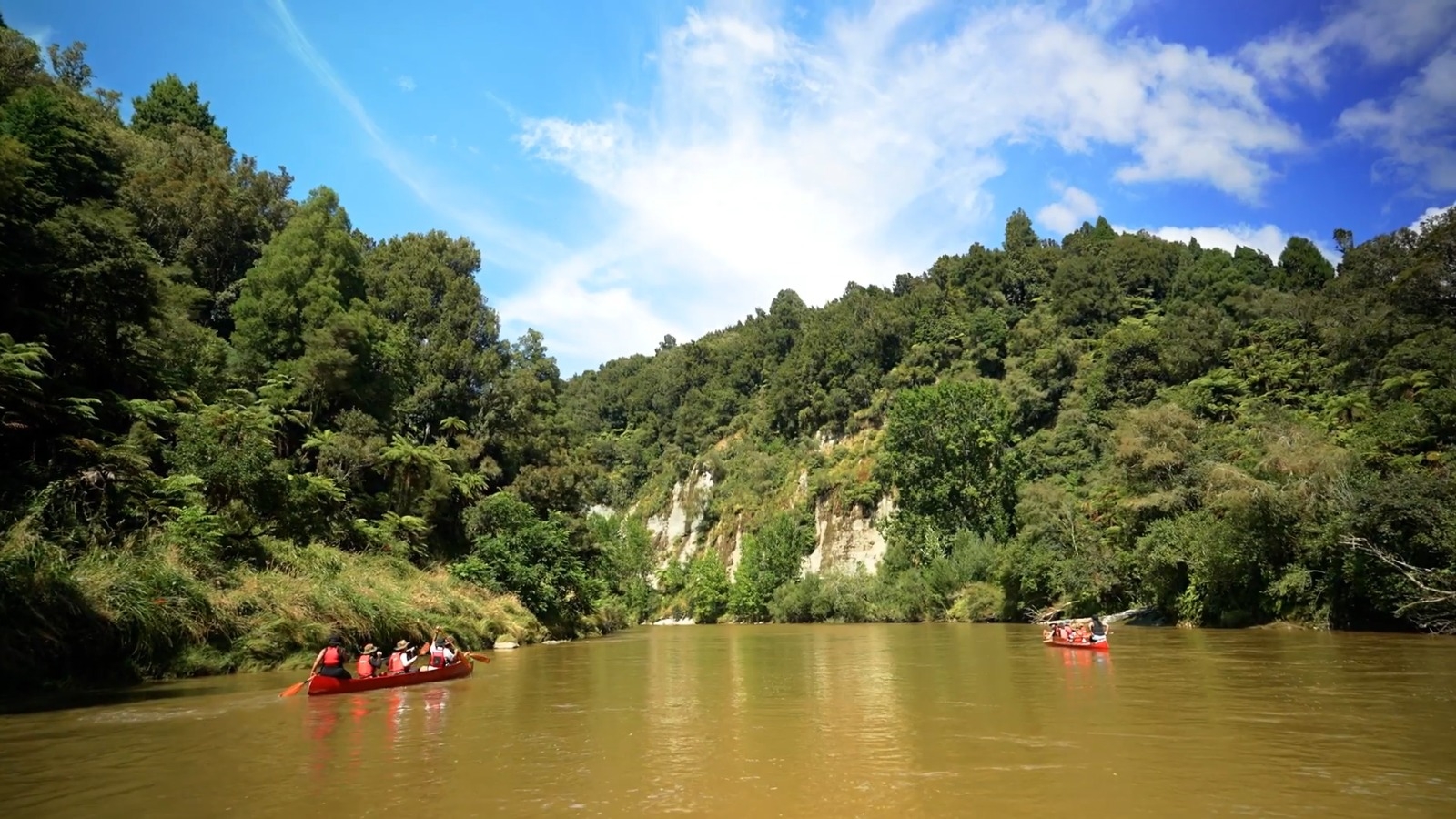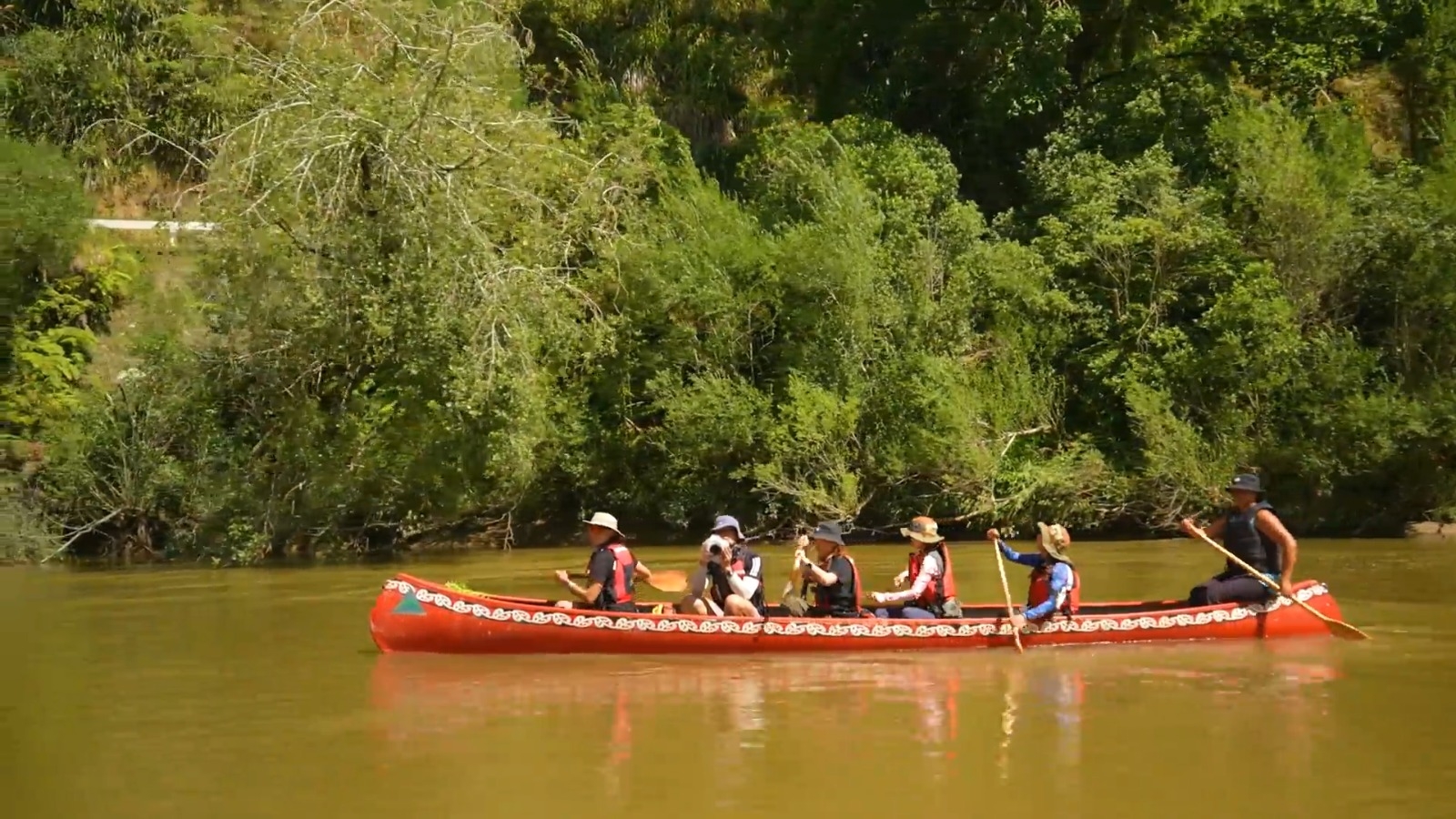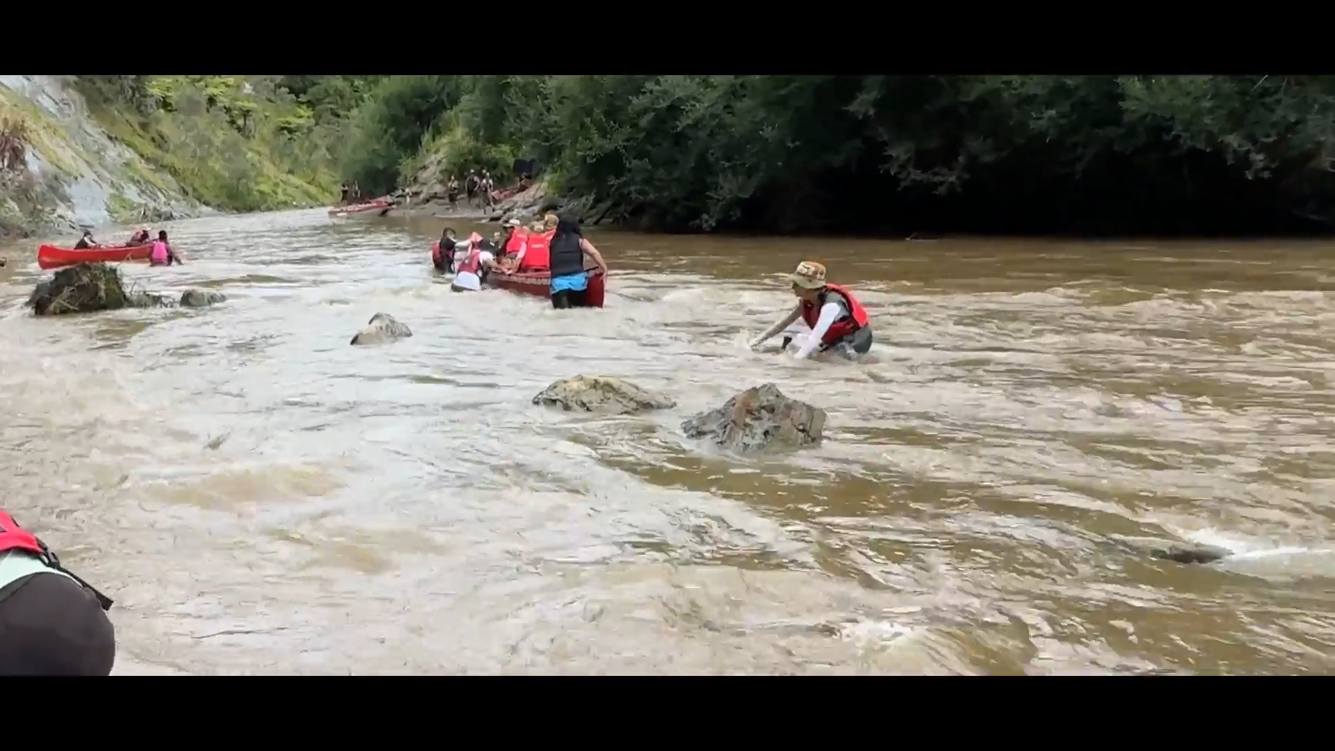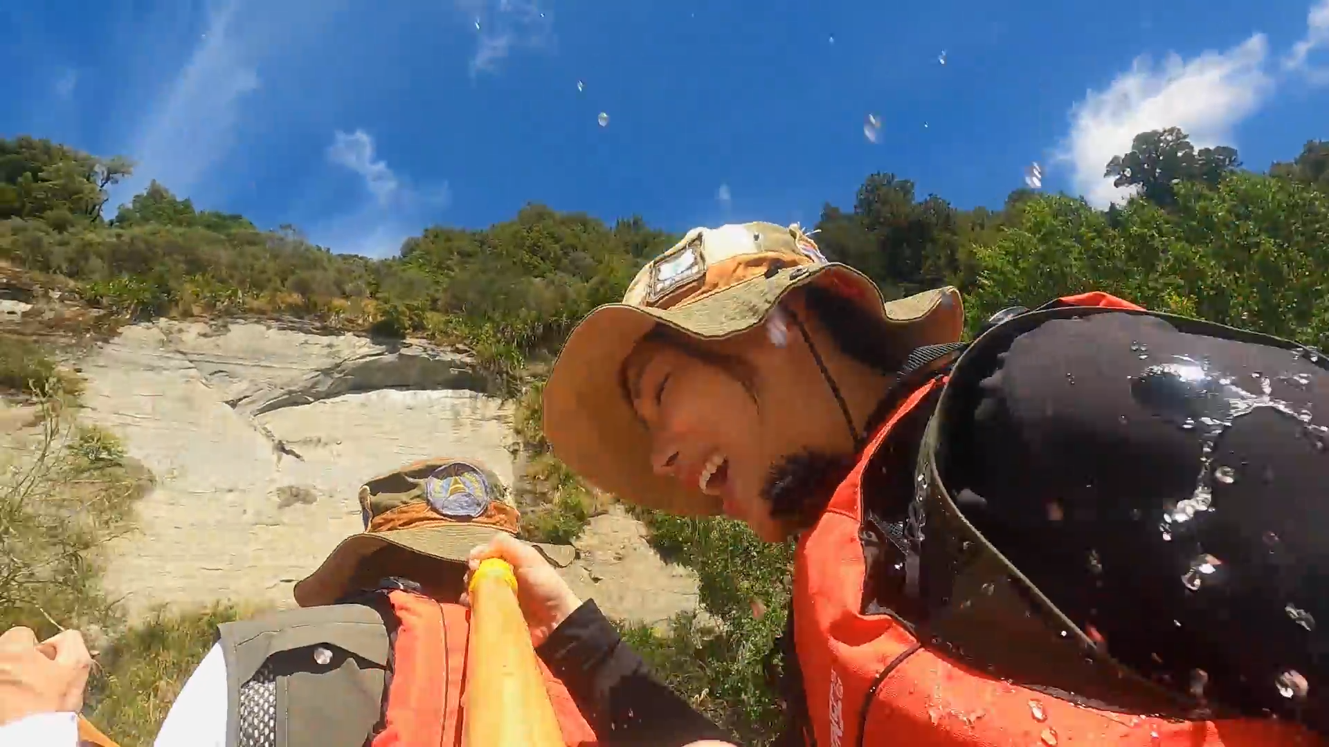 由於之前落大雨,為了安全考量,所以大家決定由原定的57km,變成划35km,即由campsite划到Whatahoro,預計所需時間為6小時。今次用的艇非常重,要集10人之力才能搬動,但過程都相當辛苦。最後在河川守護者Willi主持落河儀式後,眾人正式出發!Jessica邊划邊說,其實艇有浪推着,可以不太用力划也會前進。![]()