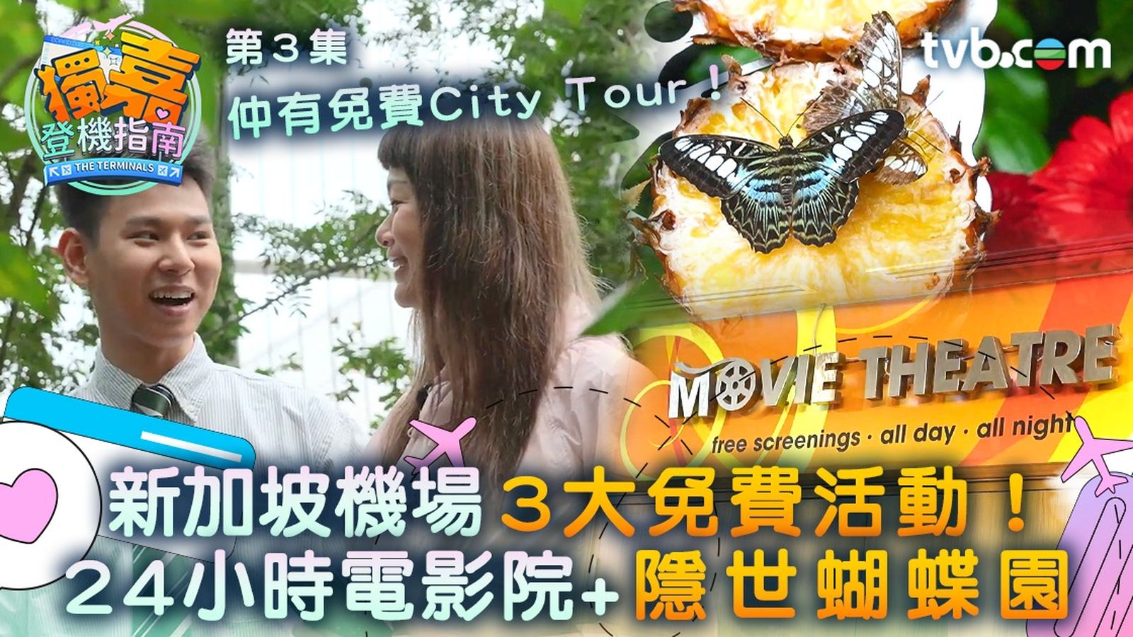 身為「慳錢一族」的蔡景行(行仔)與謝茜嘉(嘉姐)今集為大家搜羅新加坡樟宜機場的免費景點及活動,賞花賞蝶看電影,甚至是城市觀光團,費用皆為零!