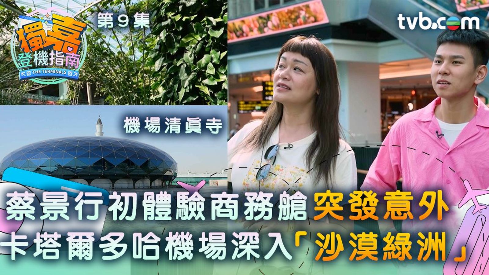 今集《獨嘉登機指南》,謝茜嘉(嘉姐)與蔡景行(行仔)到訪全球最佳機場之一,卡塔爾的多哈哈瑪德國際機場,行仔更是第一次體驗商務艙,興奮到有意外發生,搞到底褲都唔著!?原來是行仔不小心打翻飲品,無奈只能換上由航空公司提供的睡衣。
