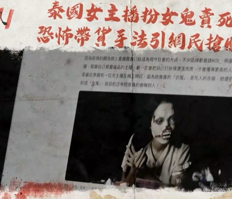 泰國有一名專賣死人衫的網店店主,為了刺激銷量,竟扮成女鬼或殭屍,並會跟觀眾講解每一件死人衫背後的故事,令整個直播氣氛都相當驚嚇。如此恐怖的帶貨手法,竟然引起大量網民追捧和搶購。當地有和尚表示,原來這些衣服大部分都是來自寺廟,而且經過作法,所以衣服不會再有不乾淨的東西。另外,原來女主播每次完成一批買賣,都會把部分收益捐給寺廟,讓很多網民都讚她有顆善良的心。說起衣服,村長梁思浩指電視城都有一個傳聞,曾經有一位女明星在穿了已故女星的古裝,就被鬼上身,幸好當時有另一位資深藝人叫醒了她。「自此,之後電視城為了讓大家安心,都會把已故藝人的名字剪走。」