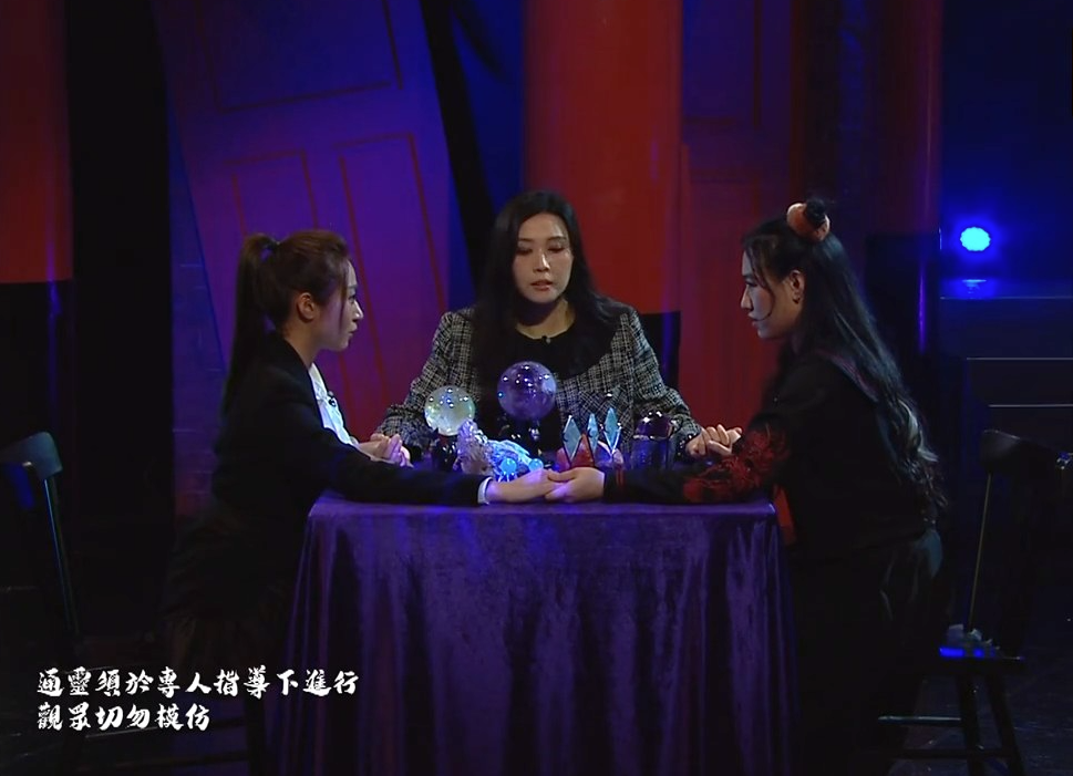 占卜師裸泳出場她佈置好水晶球、水晶等物後通靈儀式開始,她拉住Jojo及黑無常湯之欣的手說︰「我哋先去一轉古裝街(電視城),叫一啲靈體返嚟,然後先問佢問題。」最後裸泳請到靈體到場,便開始問對方身份,她說︰「請問靈體係咪我哋TVB藝員同事、係藝人?請問你係咪自殺㗎?」而湯之欣則問「對方」是否經常拍古裝。她們全靠感應去接收靈體的回覆,當中以Jojo的應應最明顯,而答案都表示「是」。