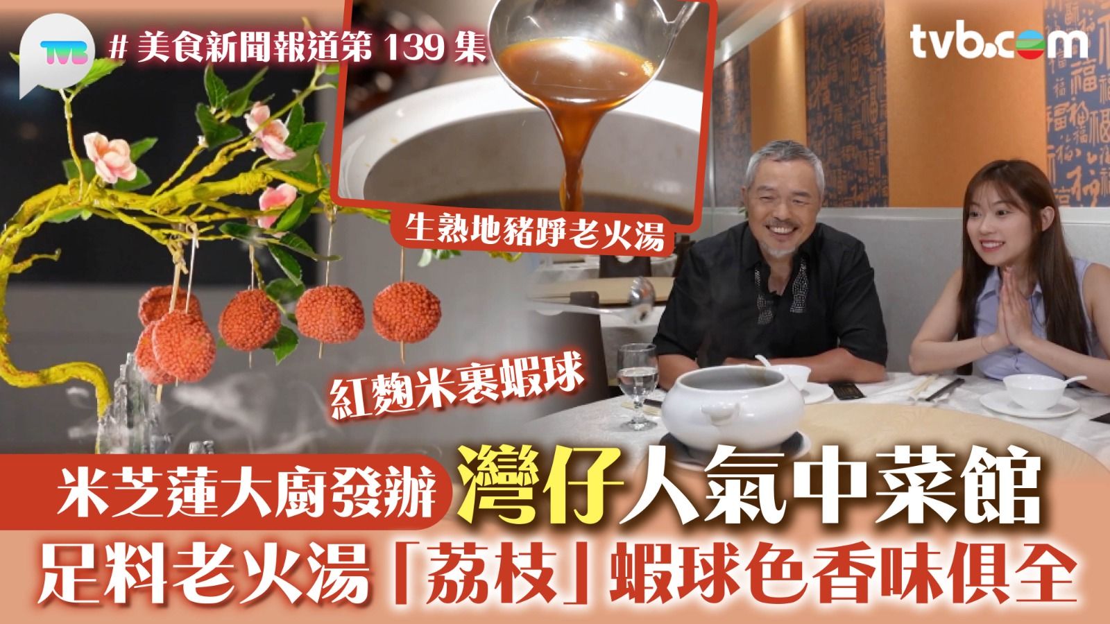今集《美食新聞報道》米芝蓮星級大廚莫燦霖師傅帶路去灣仔食人氣中菜館。足料老火湯以昆布海草、生熟地、粉腸、豬踭等材料熬煮,味道濃郁,因用料講究,連湯渣都十分美味。接住品嚐「荔枝」蝦球,裹上紅麴米嘅蝦球賣相精緻,皮脆彈牙,色香味俱全!最後莫師傅大推薑蔥焗蟹搭配煎腸粉,蟹肉鮮甜,腸粉吸收滿滿蟹汁,惹味十足!