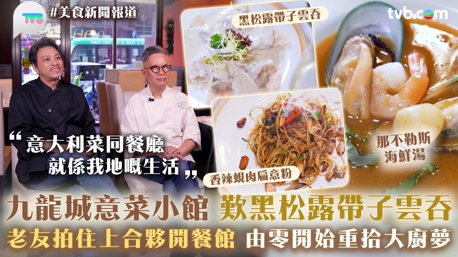 今集《美食新聞報道》「故事味緣」主角是意大利餐廳兩位老闆Jam與榮哥,二人在學徒時期就立志要自立門戶,一起合作開一間餐廳。多年後,即使他們都有各自的的事業,依然決定重拾年少時的夢想,將多年累積的意菜經驗帶給港人。