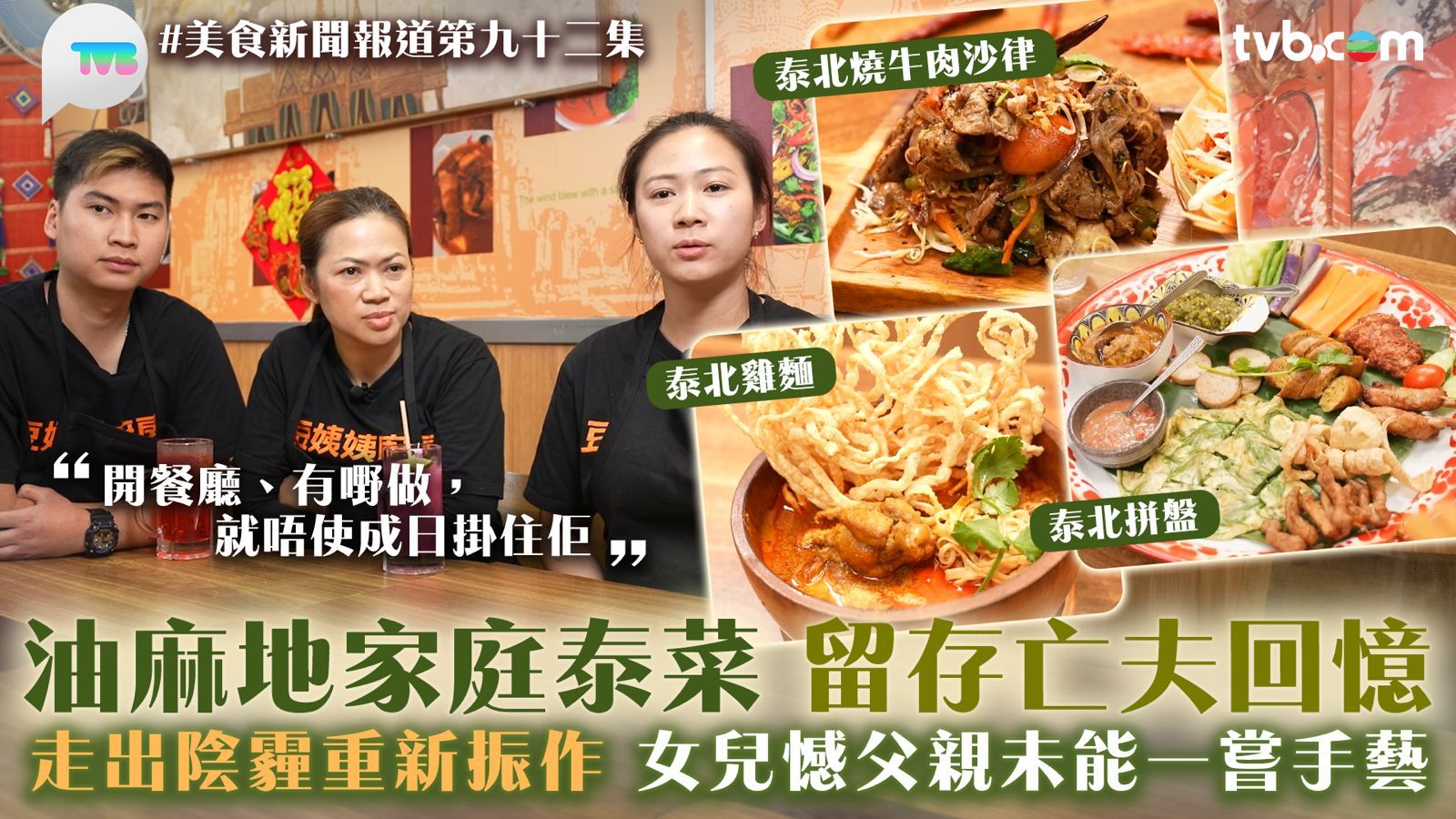 今集《美食新聞報道》「故事味緣」主角,由一家人經營的泰國菜小店,用親民的價錢貼地的美食吸引一眾街坊,充滿溫情的味道背後,是一個關於泰國與香港的愛情故事!