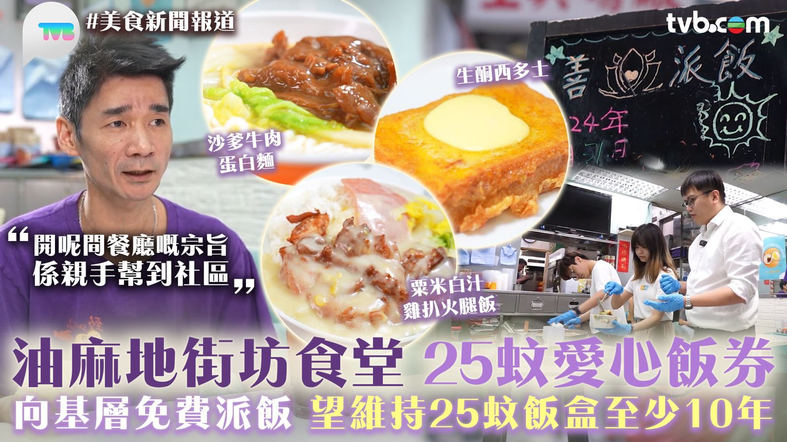 今集《美食新聞報道》「故事味緣」主角,茶餐廳老闆良哥,從19年開始向社區有需要人士「派飯」,還堅持多年25元「愛心飯卷」,希望每一個人都可以得到溫飽。