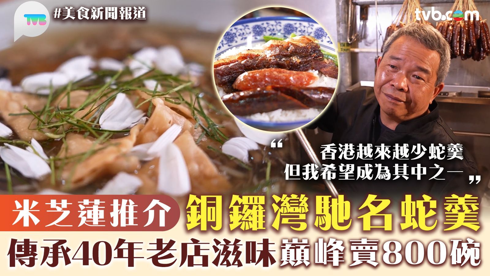 今集《美食新聞報道》「故事味緣」的主角是幾十年老字號蛇羹燒臘飯店的老闆熙哥。要做一碗好的蛇羹,首先要做好湯底。湯底一定要夠濃夠香,熙哥自早上七點就開始熬湯,熬足整日;熙哥還會搭配「薄脆」以增加蛇羹的口感;選擇「檸檬葉」沖淡蛇羹的腥味;又以「菊花」中和蛇羹的熱性,比舊時蛇王的配方都多了許多巧思!「新會七年皮」效果比新陳皮好許多。「雞肉、蛇肉、肉眼」食客大讚用料超豐富,完全不腥!「臘味飯」熙哥店鋪的特色產品臘味飯,臘腸、潤腸、臘肉全部都是自家製造,煙燻味道搭配香脆口感,酒香與肉香,完全不膩!