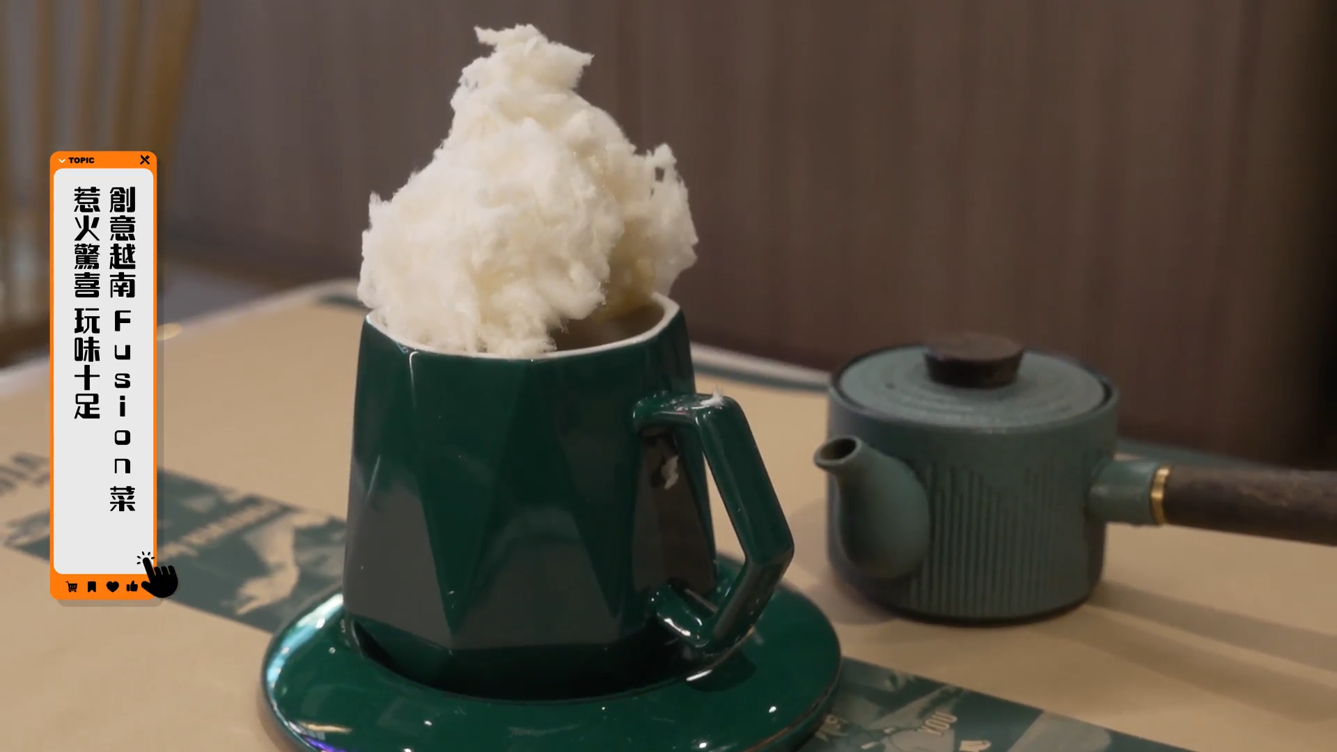 這間位於旺角的越南FUSION菜,裝修清新,讓食客可以放鬆心情品嚐美食。首先要為大家推介的是「咖啡骨」!以杯裝盛載菜式,杯內放了豬軟骨,上面放有棉花糖,另外會配上一壺越南咖啡。食法方面亦非常特別,就是把越南咖啡倒入棉花糖中,不但讓豬軟骨帶有香濃的咖啡味,加上有融化了的棉花糖,所以亦會有甜甜地的味道。這個「棉花糖X咖啡X豬軟骨」的組合,竟有意想不到的美味,而且口感獨特,軟腍入味,加上賣相特別,絕對值得一試。