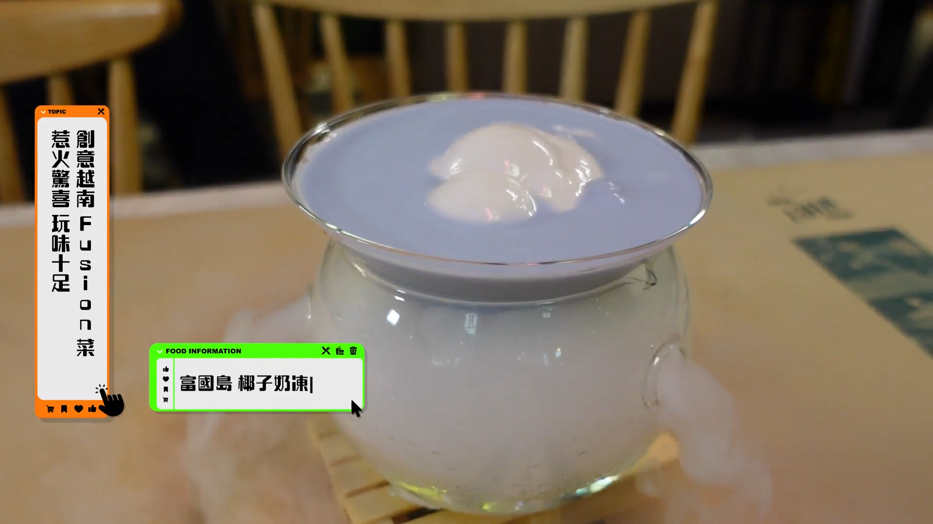 最後甜品是「富國島 椰子奶凍」 ,底座有乾冰和變色燈,上桌時有煙霧繚繞,看上去滿滿藍天白雲的感覺,打卡一流!