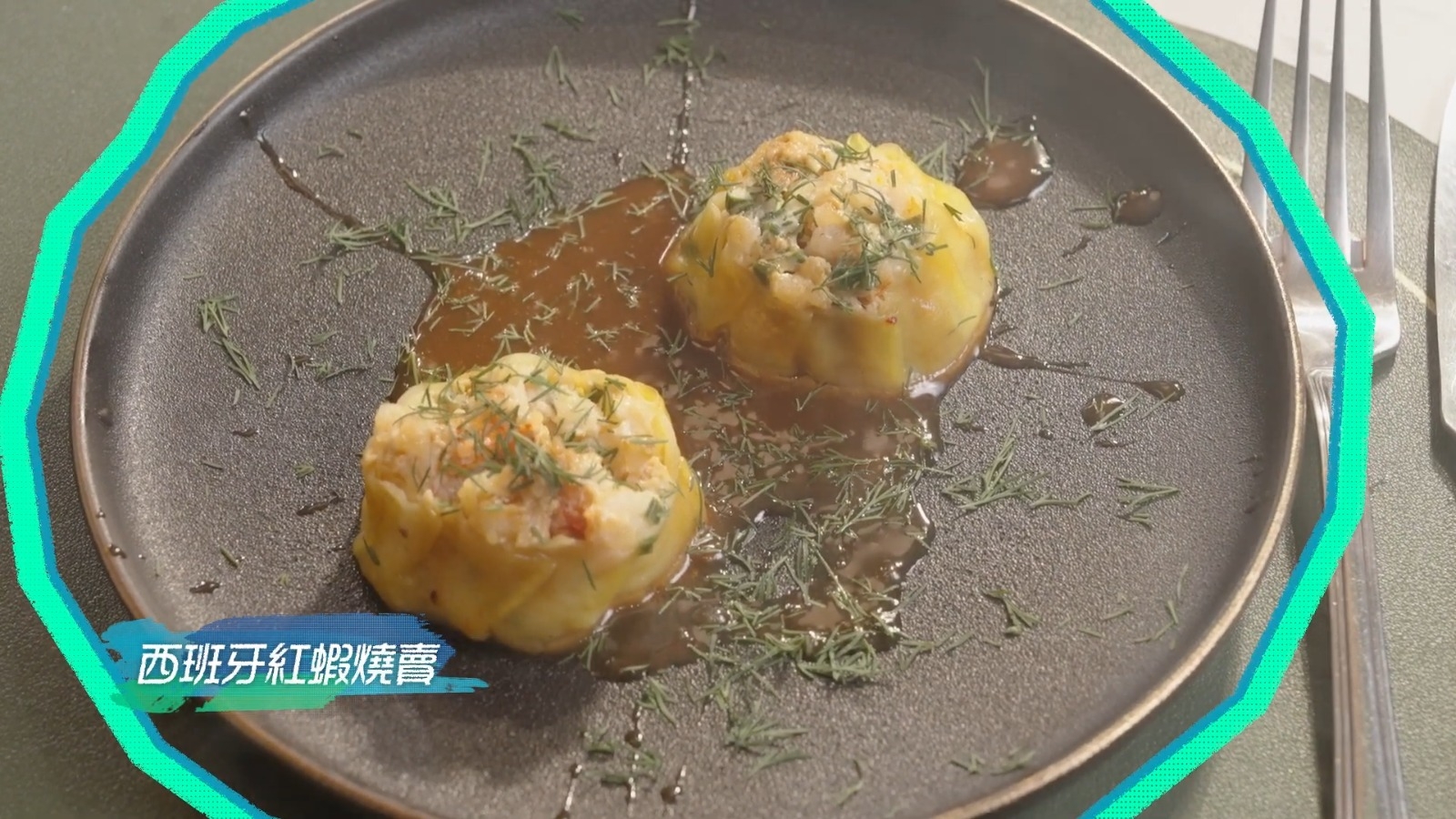 西班牙紅蝦燒賣,概念來自香港人鍾意食燒賣。方法是把已處理的西班牙紅蝦,加入忌廉芝士製作成餡。![]()