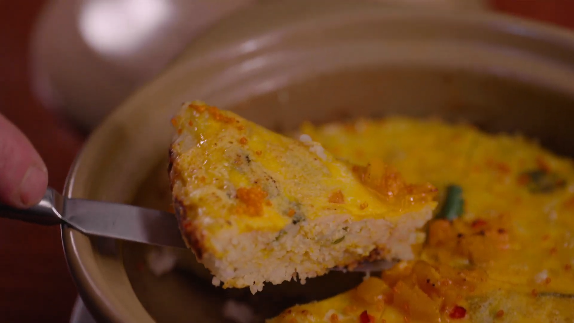 創意多多的Jacky,為了給食客新鮮感,不時推出自家研製的煲仔飯,而數最特別的是-南瓜蛋糕煲仔飯!他解釋:「如果有朋友生日的話,訂南瓜蛋糕煲仔飯,用來吹蠟燭生日歌,都『好爆』和好窩心。」