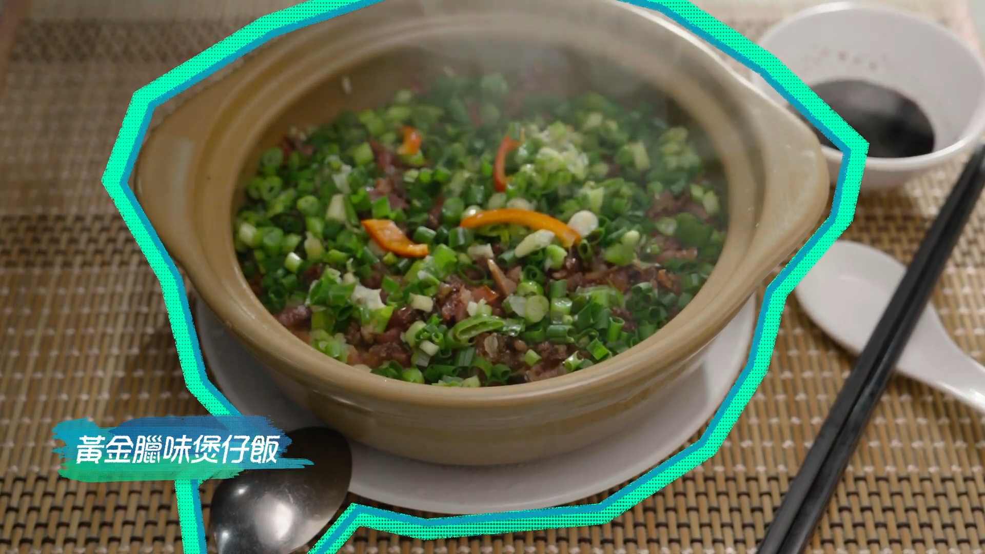 黃金臘味煲仔飯為餐廳的招牌菜,一打開有濃濃的臘味酒香,油分滲至飯底,完美結合。