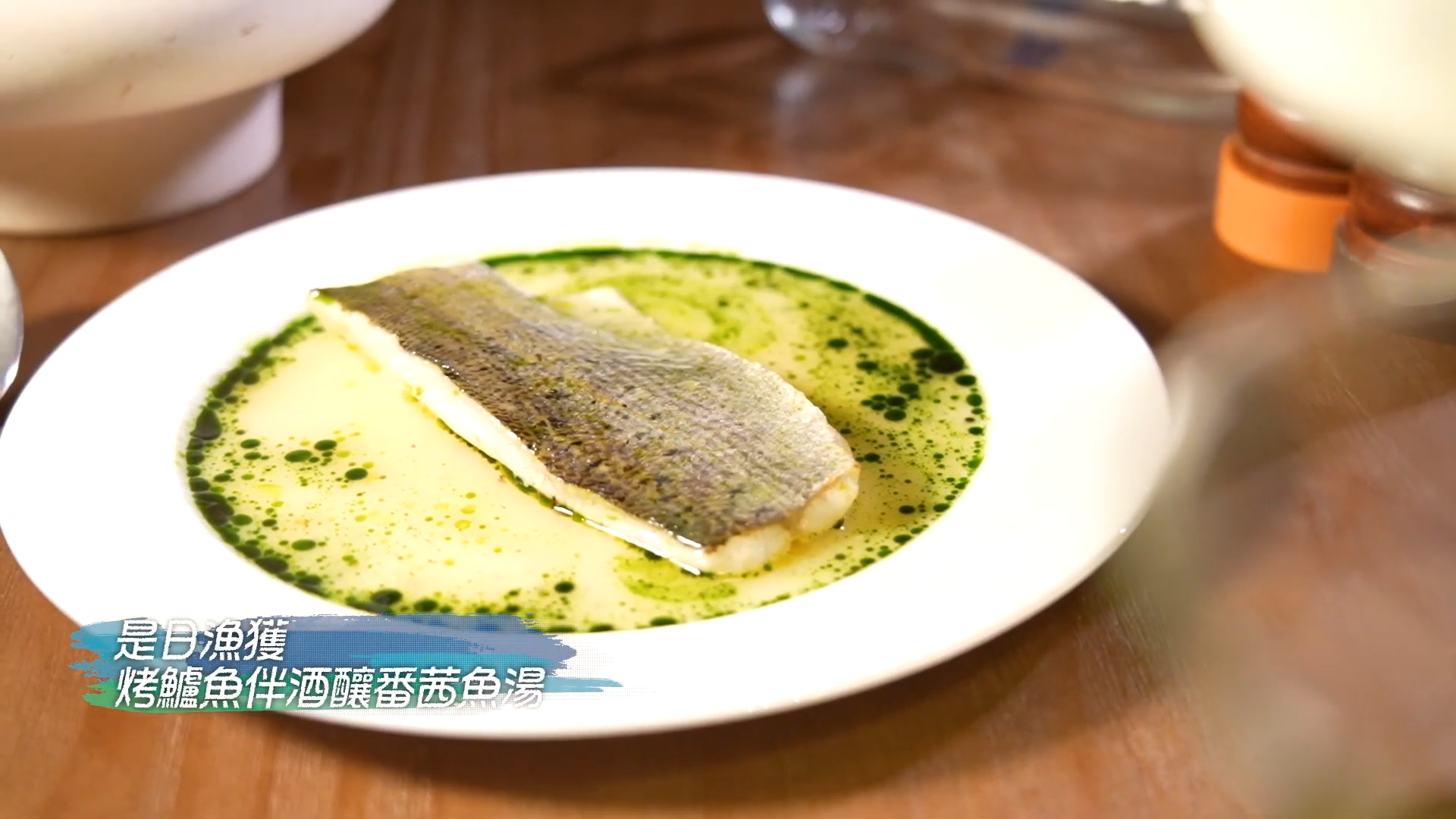 「是日漁獲 烤鱸魚伴酒釀番茜魚湯」是餐廳另一道招牌菜,以西式做法還原中式蒸魚感覺!Anthony表示:「我們會先處理鱸魚,起骨,而魚頭及魚骨會來打汁,會有濃濃魚味。之後會放一塊牛油在鱸魚上,用來保護魚皮。這道菜的靈感是來自我很喜歡吃中式蒸魚,但如果用中式蒸法去做西式菜,造型會不夠美,所以我用牛油去保護塊皮,而牛油融化後更可以令魚皮更香。」![]()