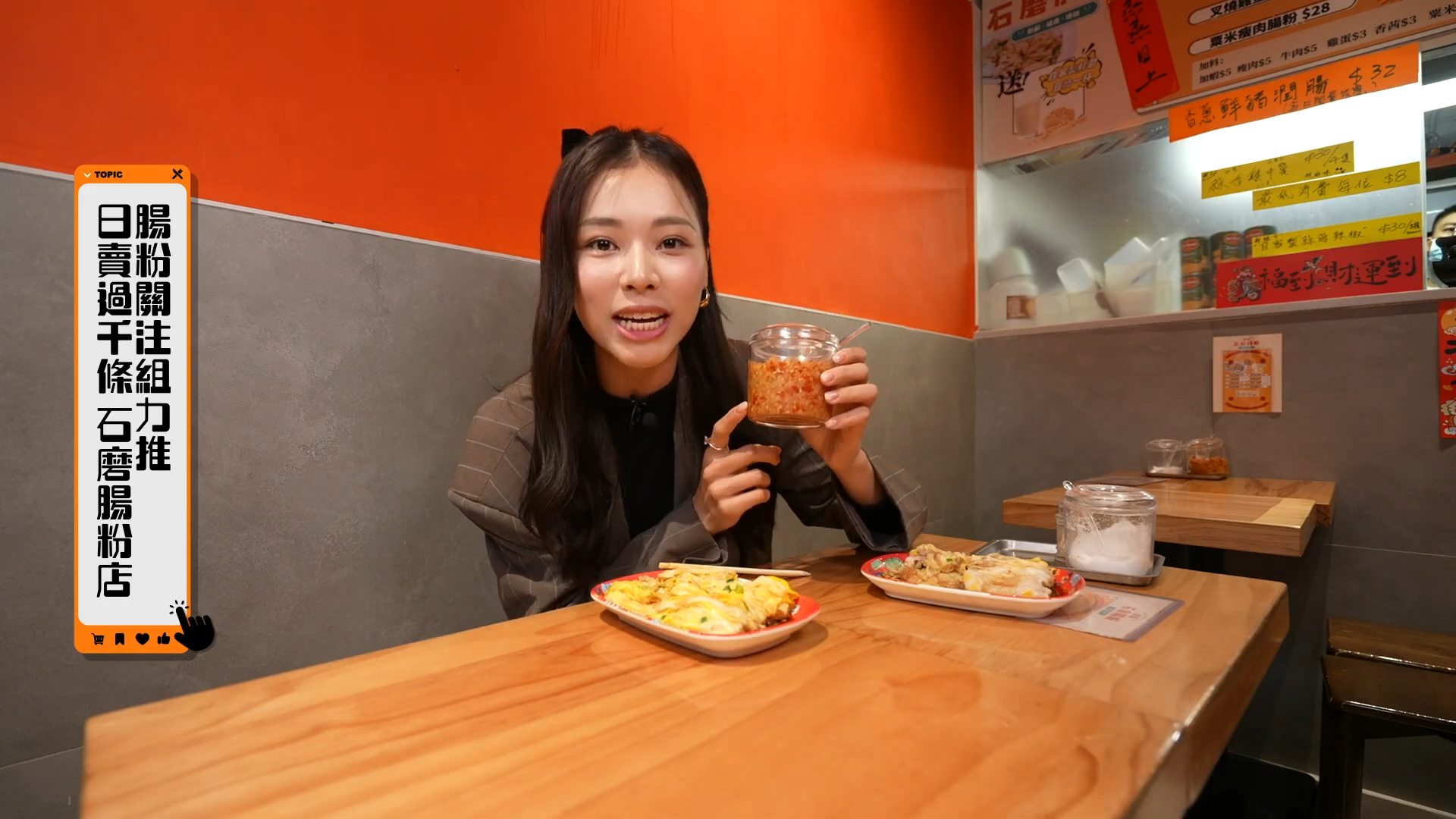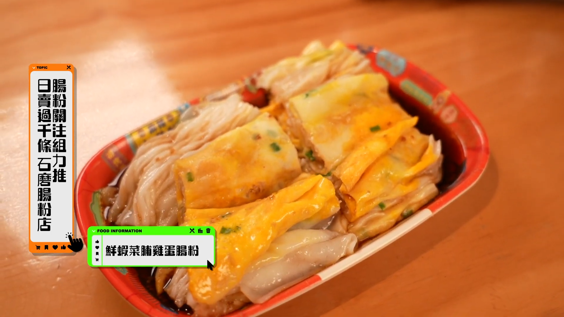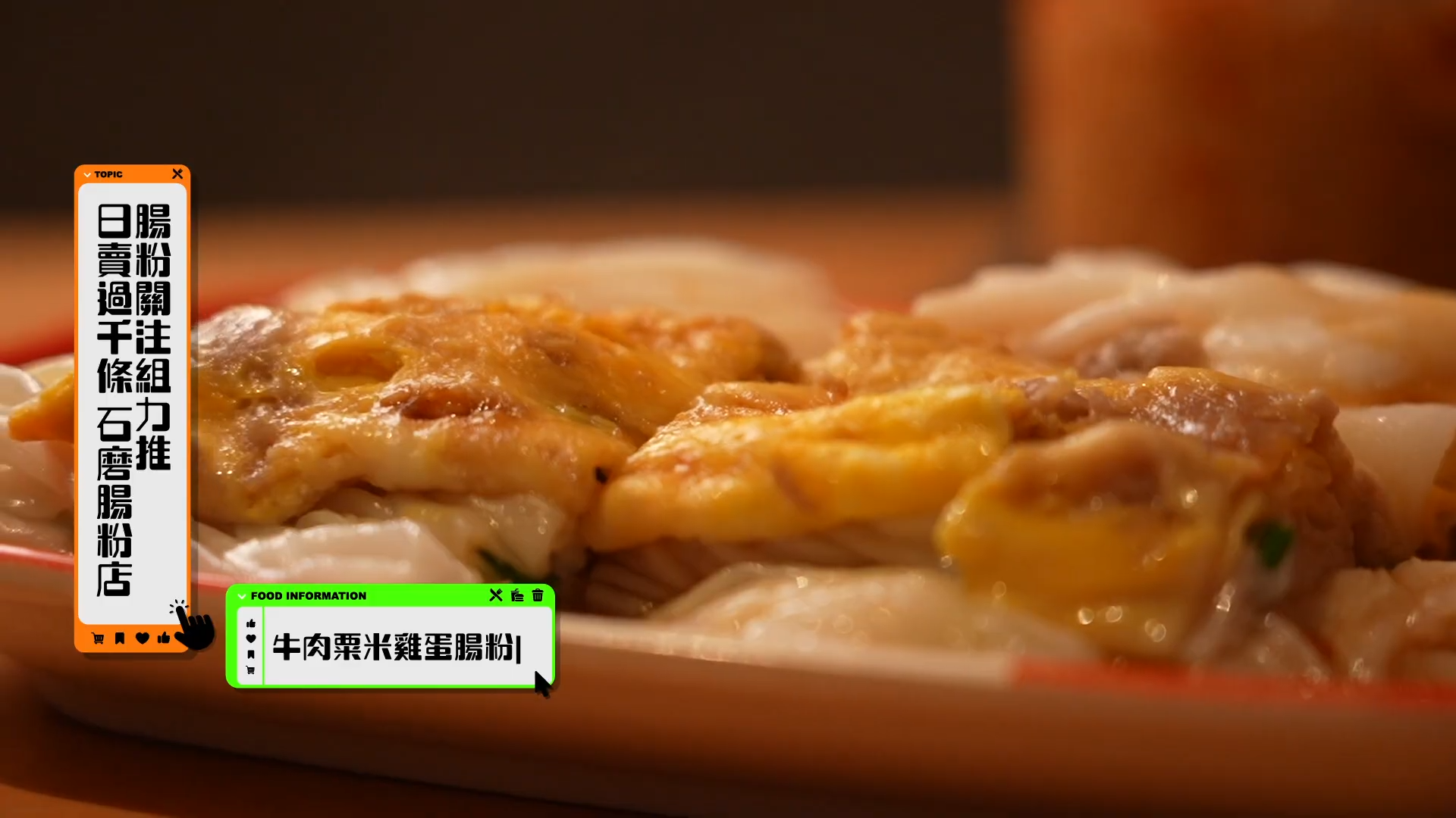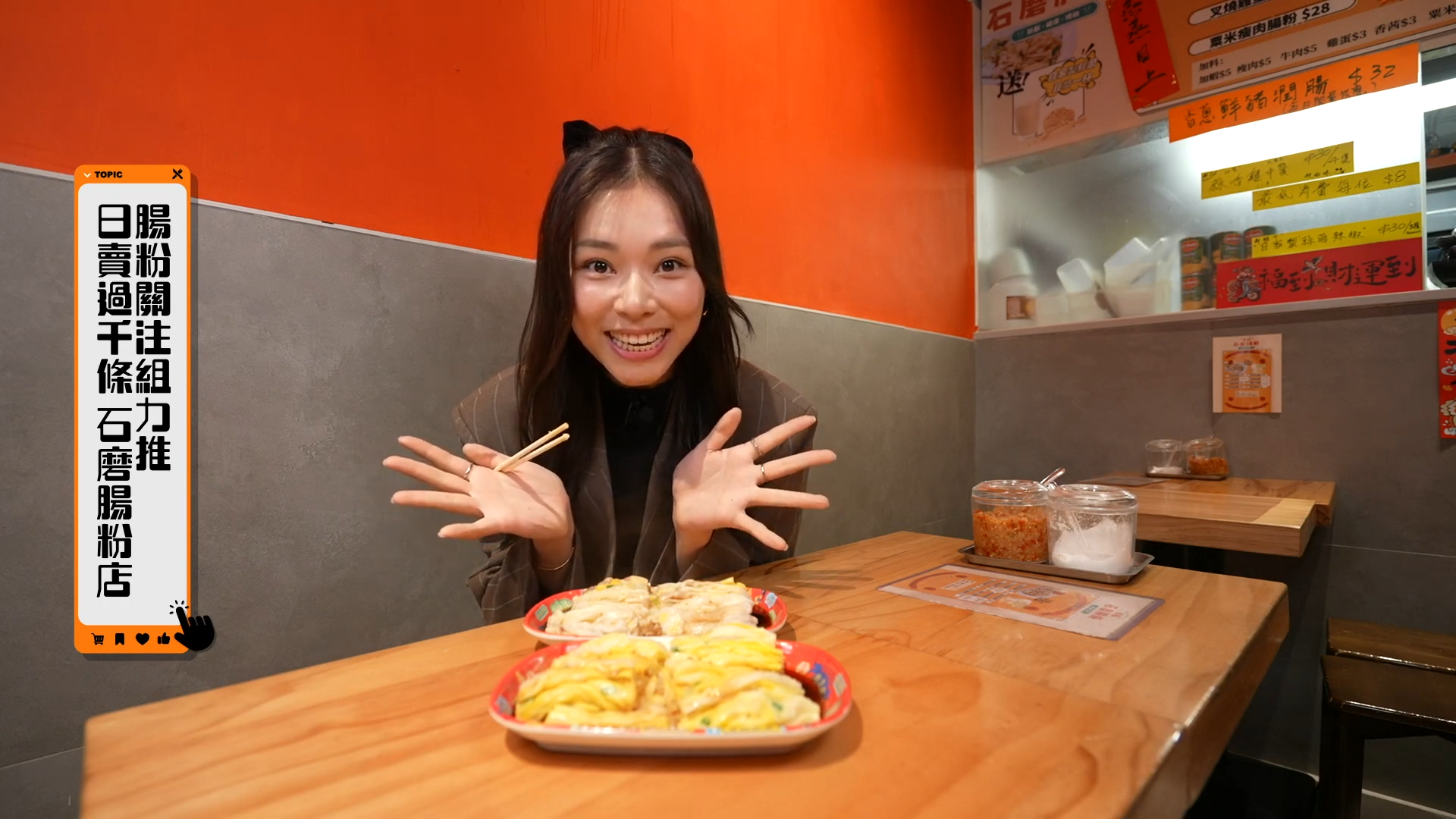 除了煲仔飯,主持廖慧儀及黃嘉雯亦帶大家到旺角一嚐連腸粉關注組都力推的石磨腸粉,又叫皺皮腸粉,以用櫃桶式蒸爐製作,會較厚身。餐廳提供8種款式可選,客人更可自行付費加選配料!