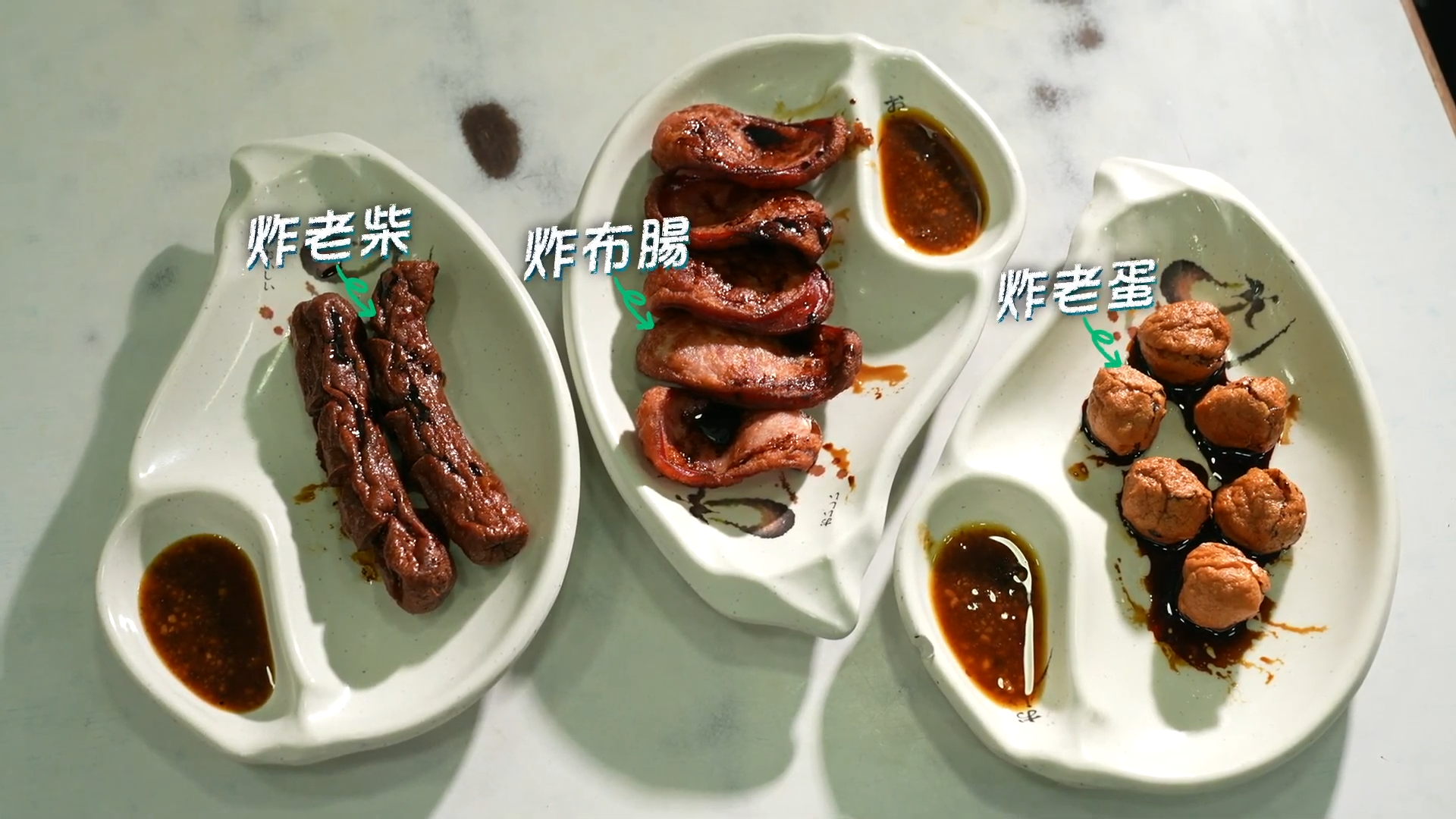 慈雲山代表性小食-- 炸老蛋、炸布腸及炸老柴,即是把食材魚蛋、腸仔及紅腸炸至脆皮或燶燶地。Ray解釋:「這3個小食起源於區內某個巴士站旁的一間小食店,以前很多區內讀書的學生,放學都會去那裡吃個小食才回家,是慈雲山成長的70、80後的共同回憶!」