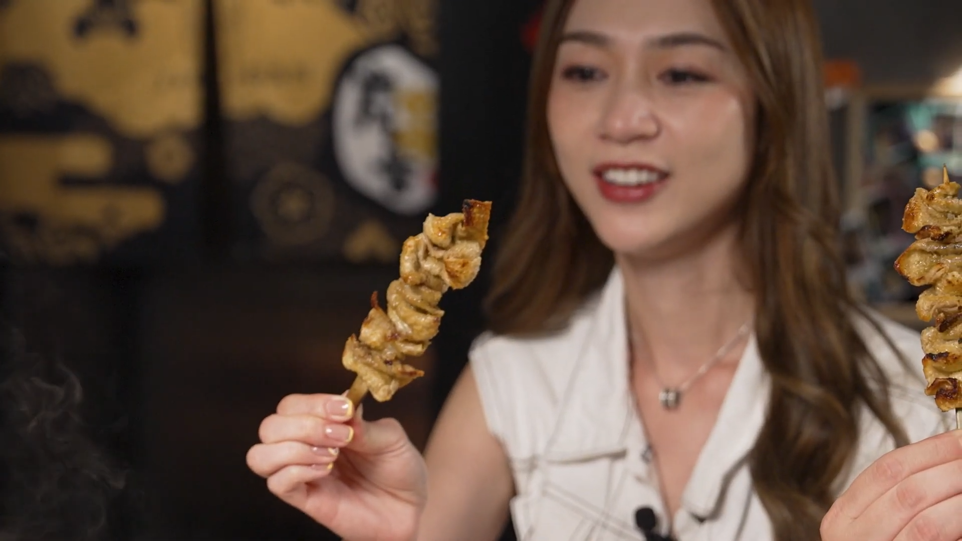 最後一站,Bob就帶大家過海到銅鑼灣駱克道試食炭燒串燒!Bob表示:「香港串燒好多,呢間係用炭爐,炭爐所需心機時間較多。」他推介了3款必食串燒!「燒阿波尾雞翼」,炭爐燒成功鎖住肉汁,令原味更出,肉質嫩滑、雞味重,皮又香又脆。
