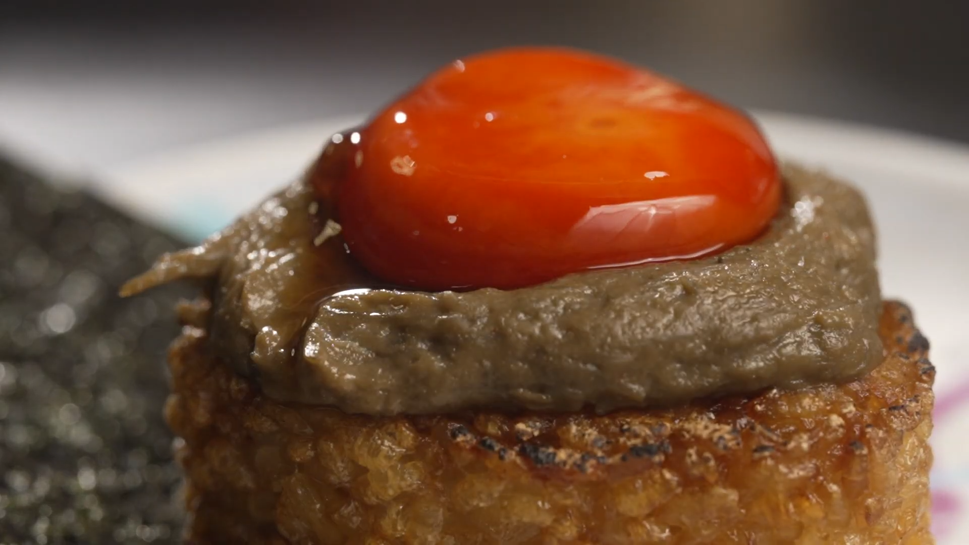 「月見蟹膏醬油燒飯團」是近期餐廳的代表作,上面有已醃製的蛋黃,進食時用紫菜包着飯團,濃濃的蟹膏味香,令人一試難忘。