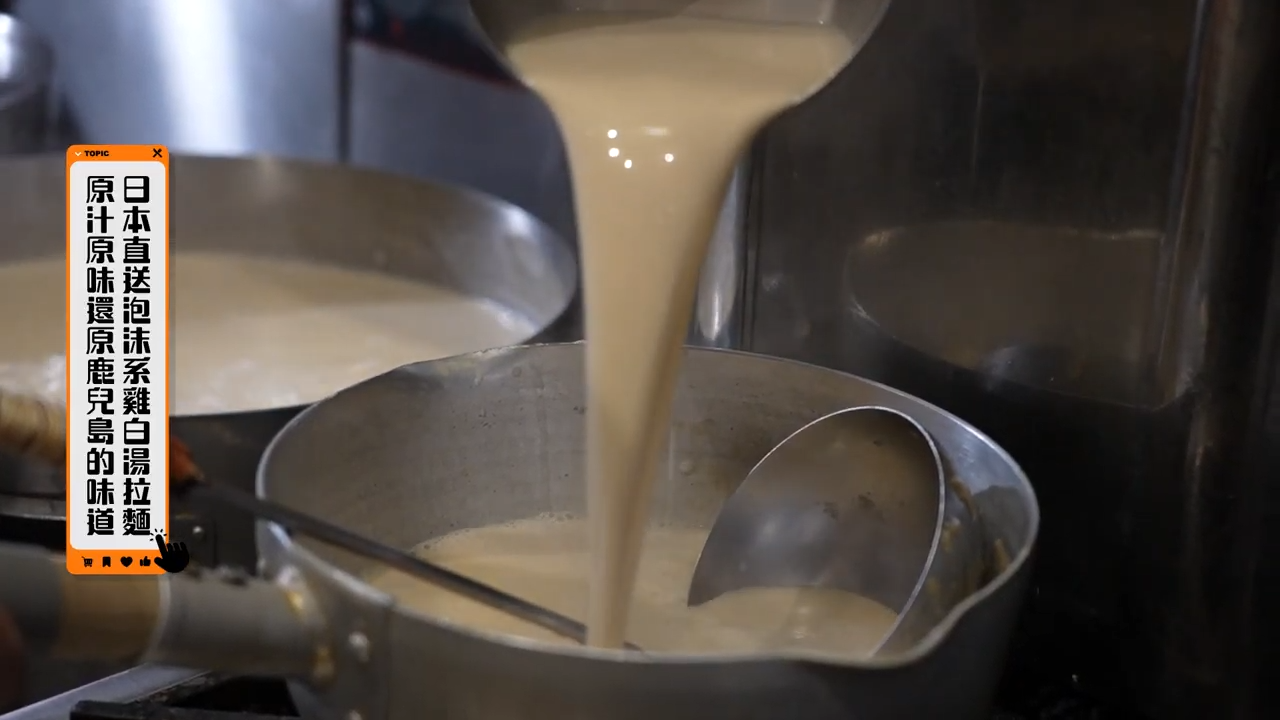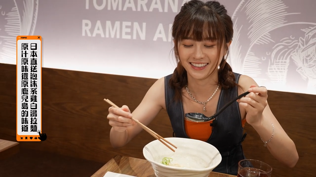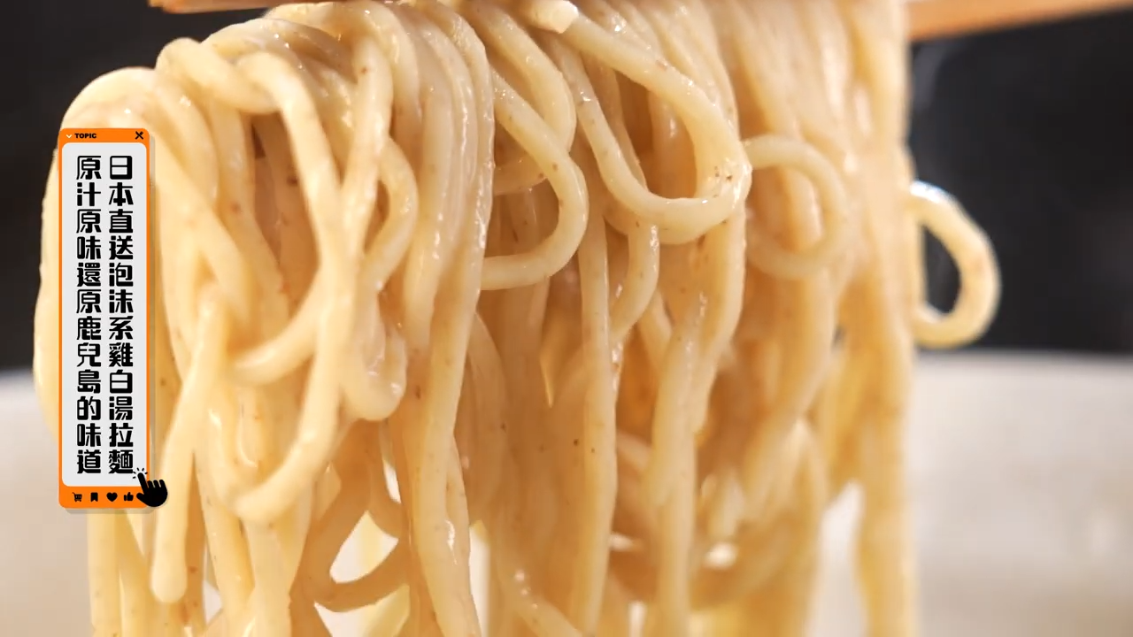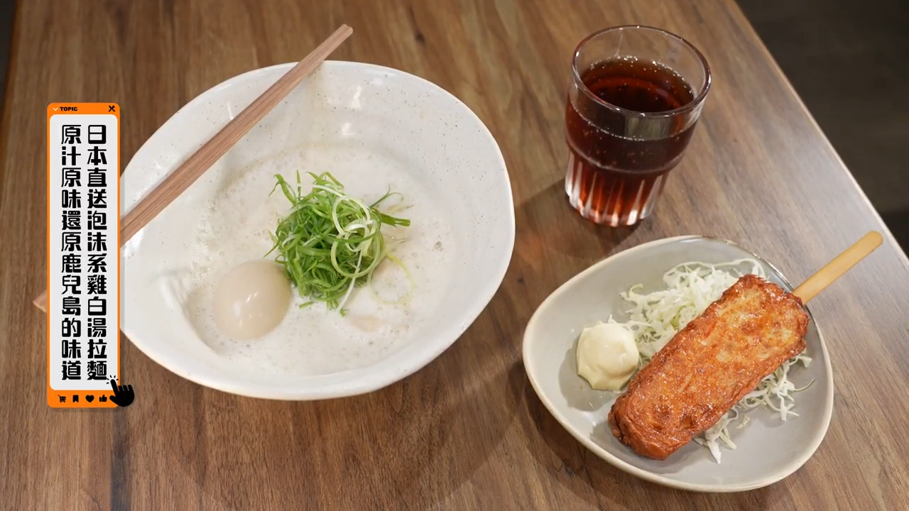 倪嘉雯(Carmen)則帶領我們來到由日本鹿兒島人氣雞白湯麵的在香港的海外第一間分店,店內配料等食材100%由日本送達,原汁原味還原鹿兒島的味道。Carmen進入後廚向主廚Alan探詢湯底的秘密。原來濃白湯底沒有添加過忌廉,熬製16個小時以上才呈現出奶白色。麵選用由三種日本小麥製成的蕎麥麵,口感更加豐富。Carmen最後連一滴湯都不留下,就知這碗麵有多鮮美。![]()