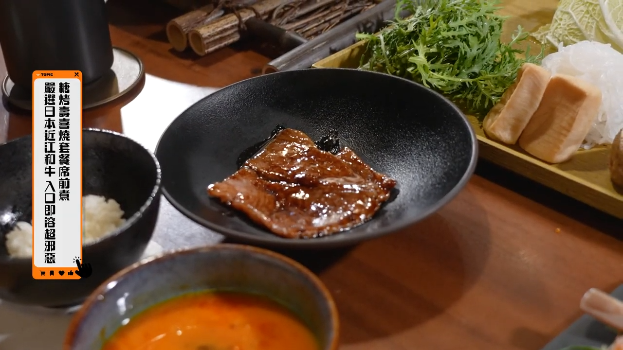 除了地道泰國菜,今集鞏姿希(Krystl)跟大家嘗試關西壽喜燒。其中,牛肉嚴選日本三大和牛之一的近江和牛。而作為前菜的近江牛刺身,搭配淡路島的洋蔥,鮮甜的口感激發出牛肉的香氣,入口即化非常邪惡。有師傅在一旁負責製作壽喜燒,近江和牛配以雞蛋液,令Krystl彷彿置身天堂。![]()