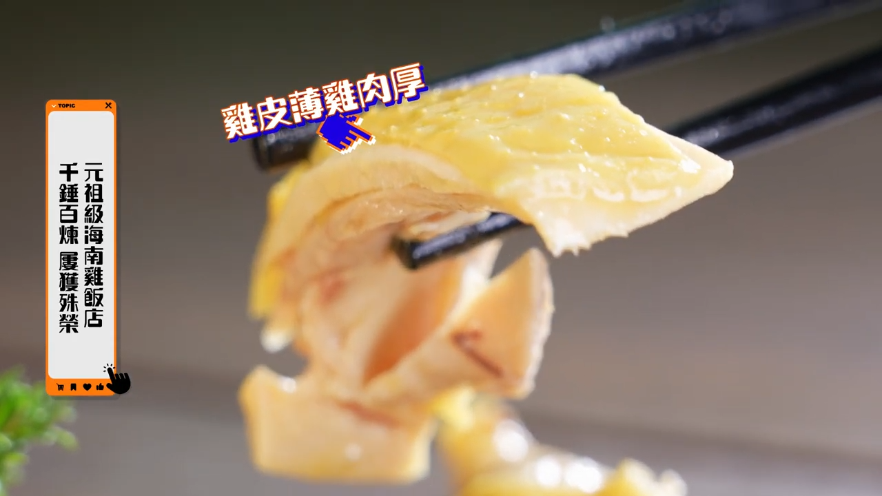 倪嘉雯(Carmen)則探店一間開業近二十年,元祖級海南雞飯店。據悉,老闆改良海南雞飯就已有100次。Carmen一口咬下去,雞皮和雞肉的比例恰到好處,不單止滑嫩,肉質還非常彈牙。原來雞的品種亦大有考究,老闆特別選用麻黃雞,嚴選兩個月左右大小,才令雞肉有如此質感。![]()