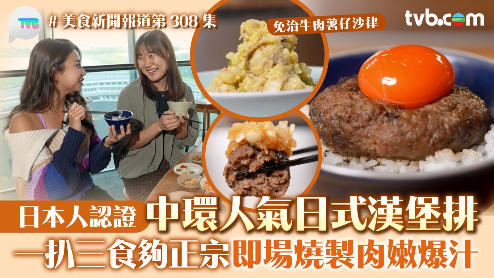 今集《美食新聞報道》 先有居港日本人Nami,聯同主持何泳芍(Honey)去到中環,品嚐最正宗的日本漢堡扒。作為過江龍的漢堡扒專門店,味道固然正宗傳神,首先上菜的是「烤牛肉漢堡扒套餐」,漢堡扒肉質極之嫩滑,肉汁溢出,配搭淡淡油脂香,配搭白飯濃烈米香,味道一流!餐廳亦建議漢堡扒配搭蘿蔔蓉、柚子醋進食,口感更加豐富;最後配搭自助的生雞蛋,放在漢堡扒頂部,再點一點蛋白配豉油,口感更滑!之後就到小食「免治牛肉薯仔沙律」現身,作為日本的家常小菜,味道固然正宗,薯仔亦非常新鮮!