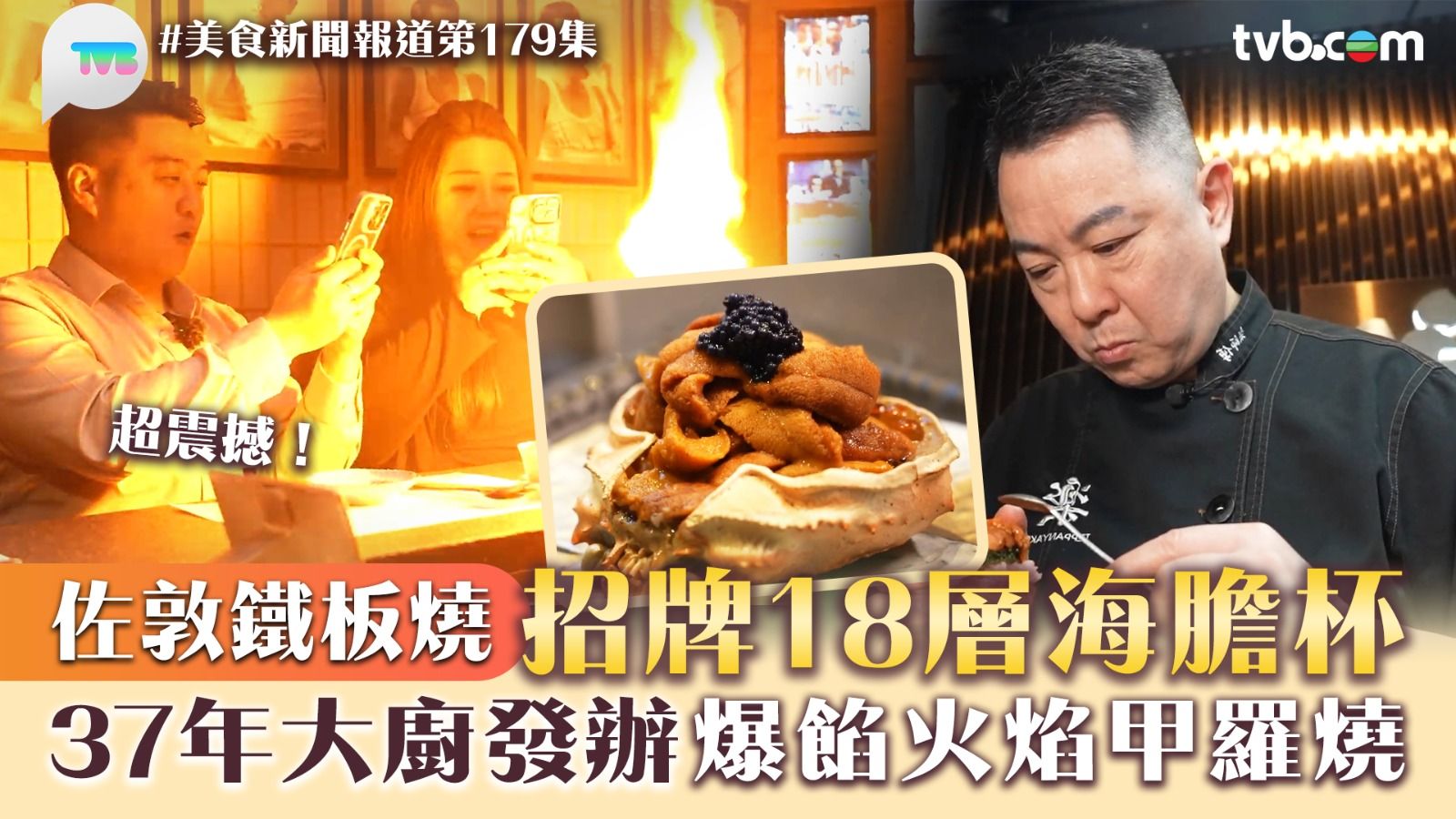 今集《美食新聞報道》「故事味緣」主角鐵板燒老闆樂師傅,所有菜式皆由他自創!收到訂單後樂師傅更會為客人度身訂造專屬餐單,呈現一場視覺、味覺的精彩盛宴。身為「海膽達人」的樂師傅,在用海膽方面已出神入化, 招牌「18層海膽杯」層次豐富,用料一點都不手軟。海膽醬芝士焗龍蝦,澳洲龍蝦口感鮮美,加上自家製海膽醬風味更加濃郁,火炙之後滋味十足,而秘製海膽醬還能提升龍蝦鮮味,搭配竹炭烏冬,享盡每啖精華。火焰海膽甲羅燒,在蟹殼上放滿日本松葉蟹肉、蟹膏、魷魚、海膽,加上三文魚子及黑魚子,令口感味道更加油豐富。流心斑馬瀨尿蝦,由脆口、煙韌到流心,不單只食材講究,對廚師的心機功夫亦都有要求,才能做出三重驚喜。正是樂師傅重視客人、重視出品、不斷嘗試、追求完美的態度,才令客人吃完仍念念不忘。