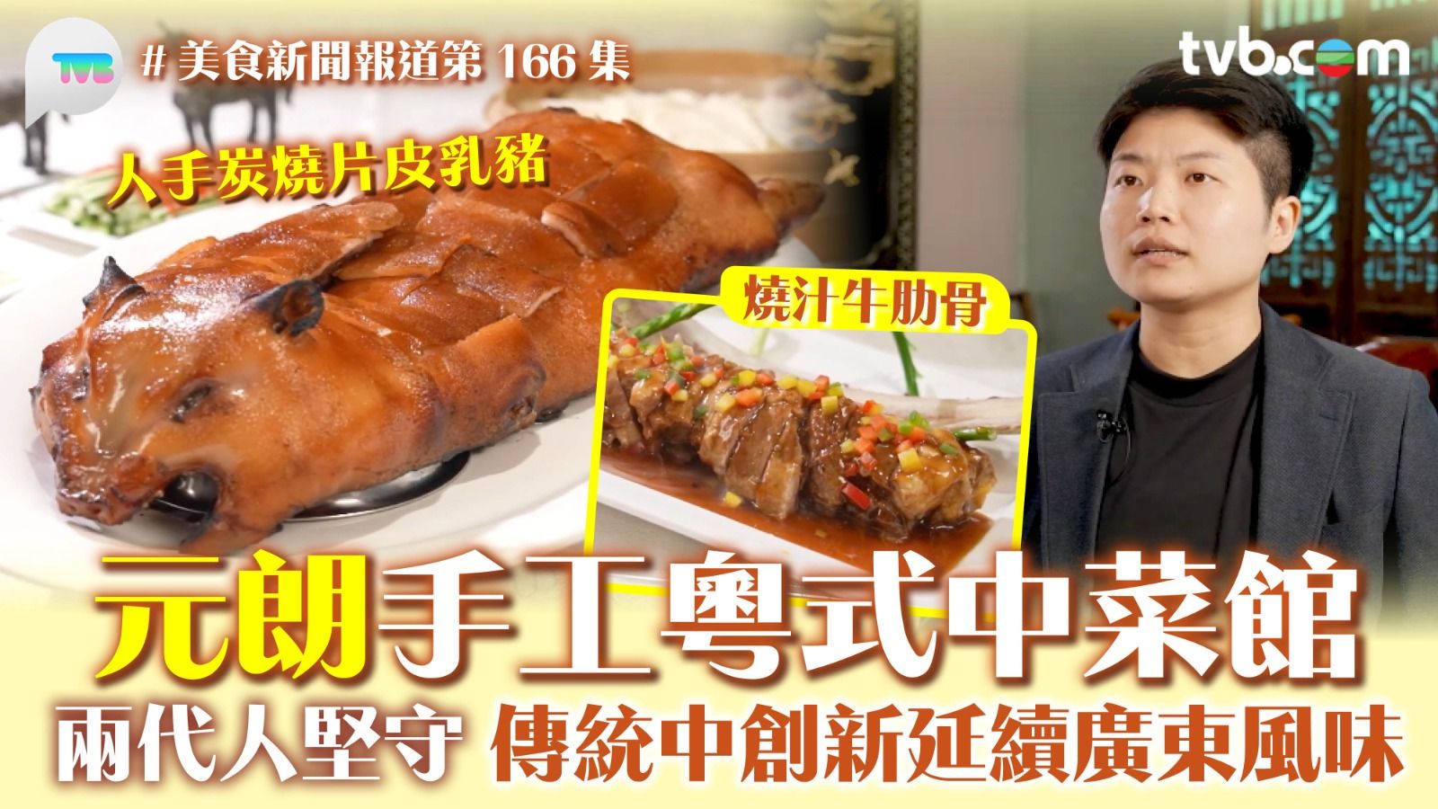 《美食新聞報道》今集「故事味緣」主角是元朗一間主打燒味的酒樓,父女兩代人齊心協力,傳承手工粵菜。餐廳老闆Winki結合父親20多年的餐飲經驗,將傳統與創新菜式融合,推出炭燒片皮乳豬,甚受食客喜愛。 餐廳選用6至7斤重的「BB豬」,中火焗45分鐘至八九成熟。乳豬要夠脆,還有一步至關重要,就是靠師傅不停手工炭烤,令肉質及口感達至最佳。最後配合片皮鴨的吃法,薄餅、蔥段、黃瓜條、甜麵醬搭配香口酥脆烤乳豬,層次感十足!另一招牌菜名門太子炒飯,以果仁、蝦子代替部分肉,更有口感。燒汁牛肋骨,使用秘製燒汁醃製75分鐘,牛肋骨口感嫩滑,每一塊都掛滿燒汁,非常惹味!