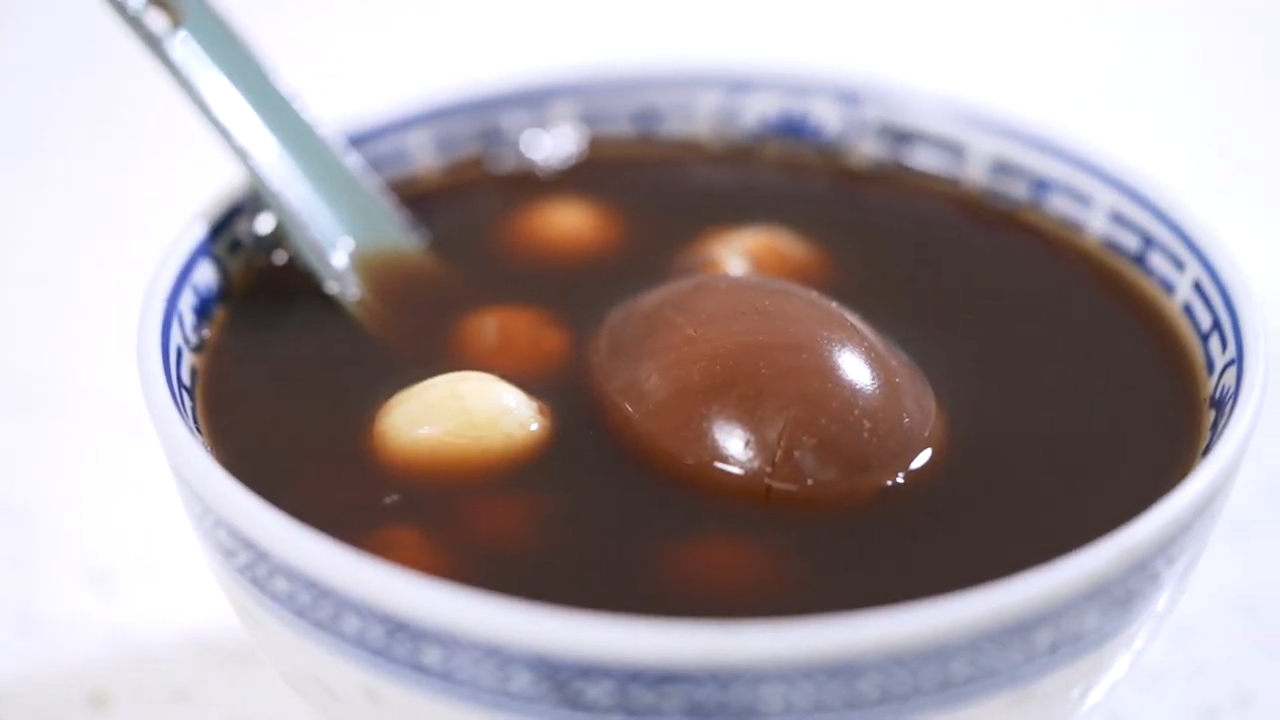 講到糖水舖的王牌,非桑寄生蓮子蛋茶莫屬。單單每日的銷量就過百碗,恰逢節日的話,更能賣出兩三百碗。要成功熬製這款老派糖水,第一步,先製作茶袋,將包好的茶袋放進滾燙的熱水中,熬製一至兩個小時,關火。第二步,過渣。第三步,則是將去殼的水煮蛋放進煮好的桑寄生水中浸泡5到6個小時。![]()
