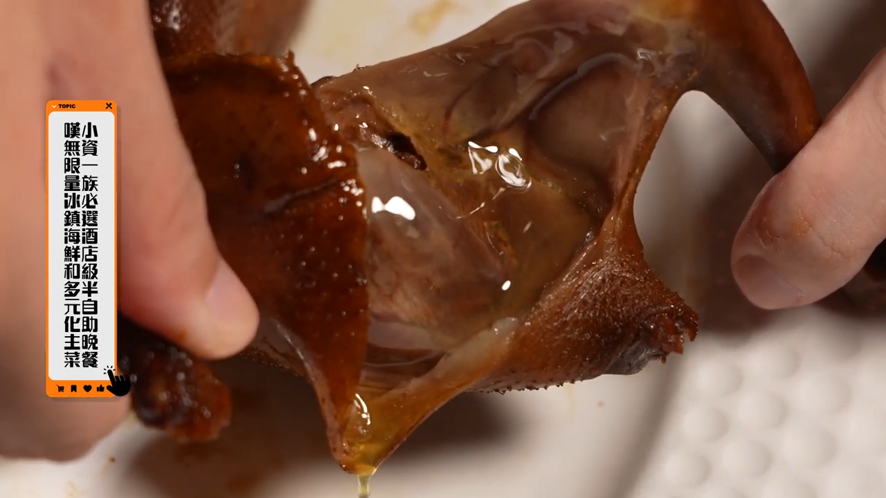 伍倩彤(Gillian)則帶大家探店小資一族必選酒店級半自助晚餐,每晚有七種不同主菜選擇,嘆無限量冰鎮海鮮和多元化主菜。秘製陳皮瑞士汁頂鴿,每一口汁水在口中爆開。香煎法式鮮鴨胸配香橙汁,皮脆肉嫩,再加上香橙汁,中和鴨肉的油膩,酸酸甜甜極開胃。法國馬賽式煮海鮮則是海鮮的盛宴,帶子鮮甜爆汁,滿足感爆燈。![]()