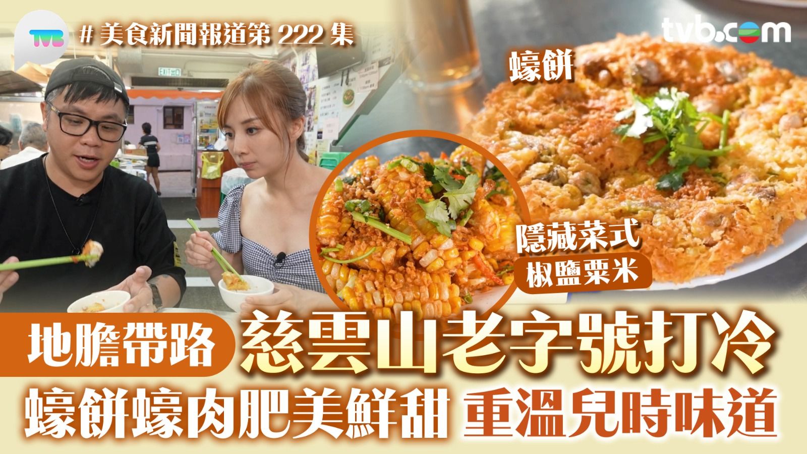 今集《美食新聞報道》先有主持賴彥妤(Vivienna)伙拍慈雲山地膽Ray,陪住大家去搵食!兩人今次去到蒲景里,先試試多道地道的打冷名菜!首先上菜就是「炸墨魚餅」,表層炸得非常香脆,口感彈牙,包著墨魚粒更加爽口;接着「椒鹽粟米」上菜,作為餐廳的隱藏餐牌,味道當然唔輸蝕,椒鹽滲透整個粟米,咬下去又鮮甜溢出,配搭新鮮;之後就是「蠔餅」上菜,配搭豆瓣醬與魚露,放入口味道鹹鹹辣辣,蠔仔口感格外新鮮,肥美又大粒,一試難忘;最後菜式「鹹魚雞粒豆腐煲」,裏頭的軟豆腐切粒再炸香,雞肉連帶雞皮鎖住油香味,拿汁伴飯簡直一流!