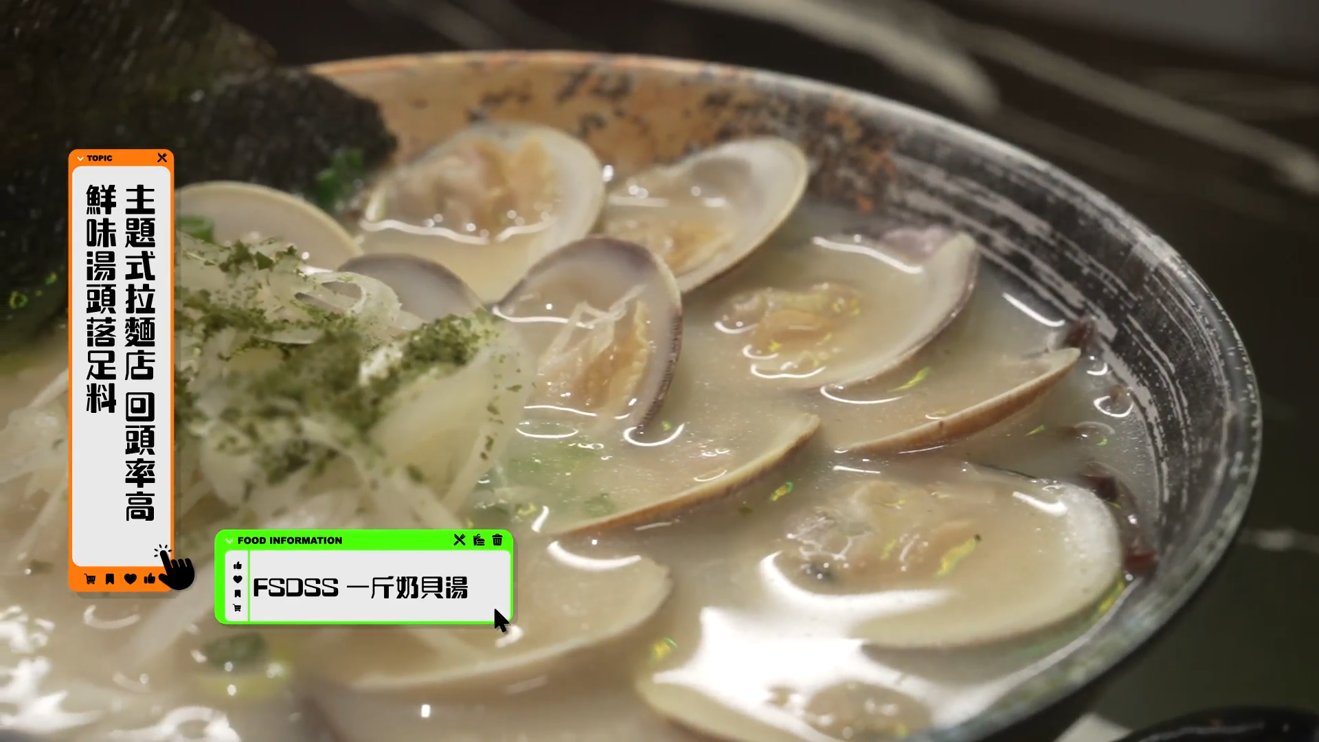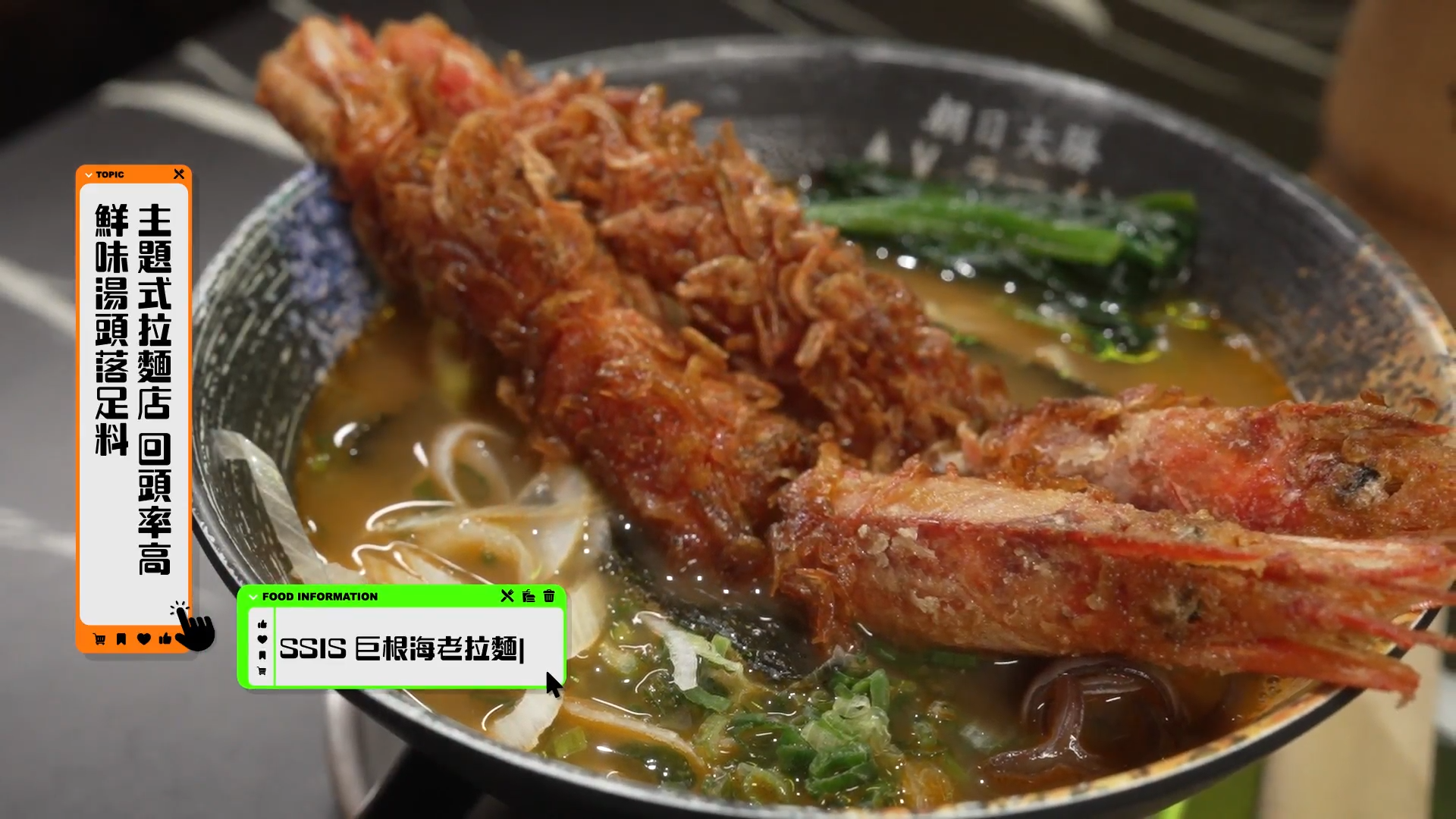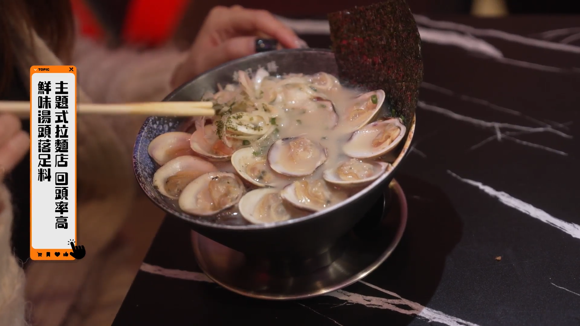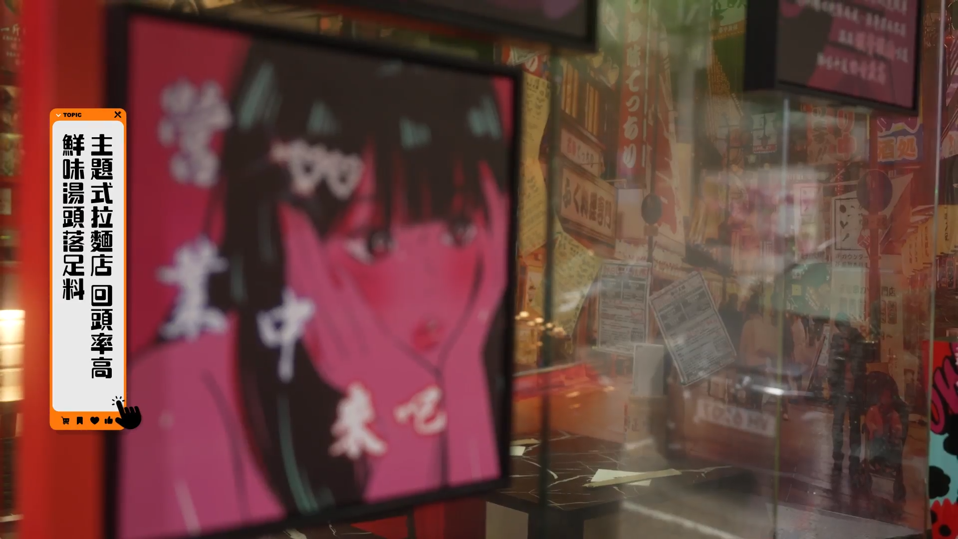 今集還有伍倩彤(Gillian)帶大家到尖沙咀一間主題式拉麵店,以日本愛情動作片做主題,裝修別具一格,充滿氣氛。店中有一幅由新加坡漫畫家繪製的菜單,再配合老闆精心設計的拉麵名,成件事都令人想入非非。![]()
