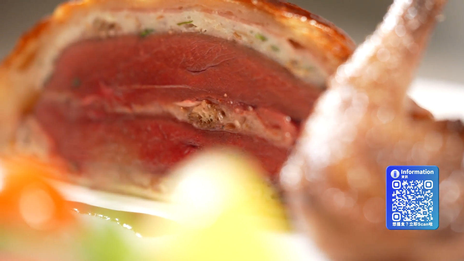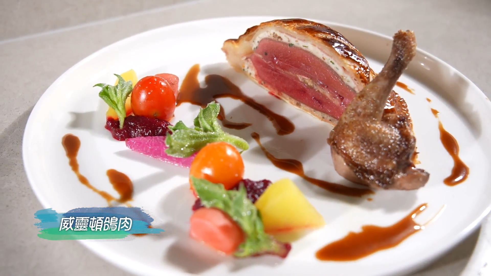 Kenji將常見的威靈頓牛肉換成鴿肉,就搖身一變成為法國菜,味道同樣吸引,做到皮脆肉多汁!這道菜用了用雞肉、蘑菇和香草製作的雞肉慕絲,與鴿肉十分夾。他表示:「威靈頓好少加慕絲,鴿肉無咁多脂肪,加咗慕絲,會較濕和潤滑,口感會更佳,加上酥皮去焗,難度在於入爐時間同温度掌握,多一分鐘有機會過熟,温度唔啱有機會會生,所以要嘗試好,掌握好。」![]()