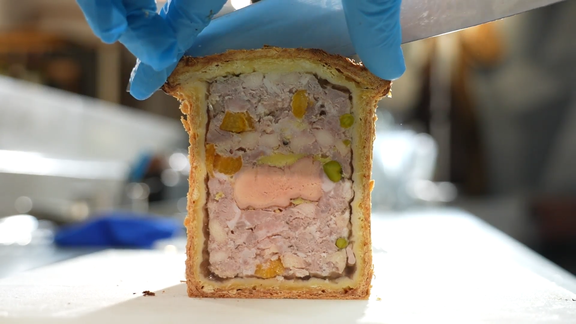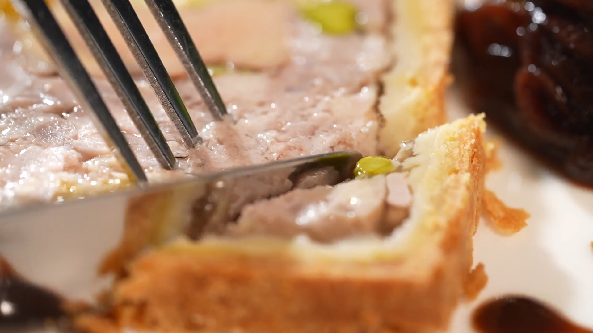 Kenji分享,他於20年前,在一間酒店工作,是他第一次學到和嘗試吃法式肉批。「食落覺得好特別,做工好精細,所以覺得呢種食品可以推廣,香港比較少見到法式肉批,我估係因為手工較多,因為要預早一日整批皮,肉又要早一日整,焗完又要放雪櫃起碼6至7個鐘先可以用,佔兩三日時間,可能繁複啲,要時間長啲。」