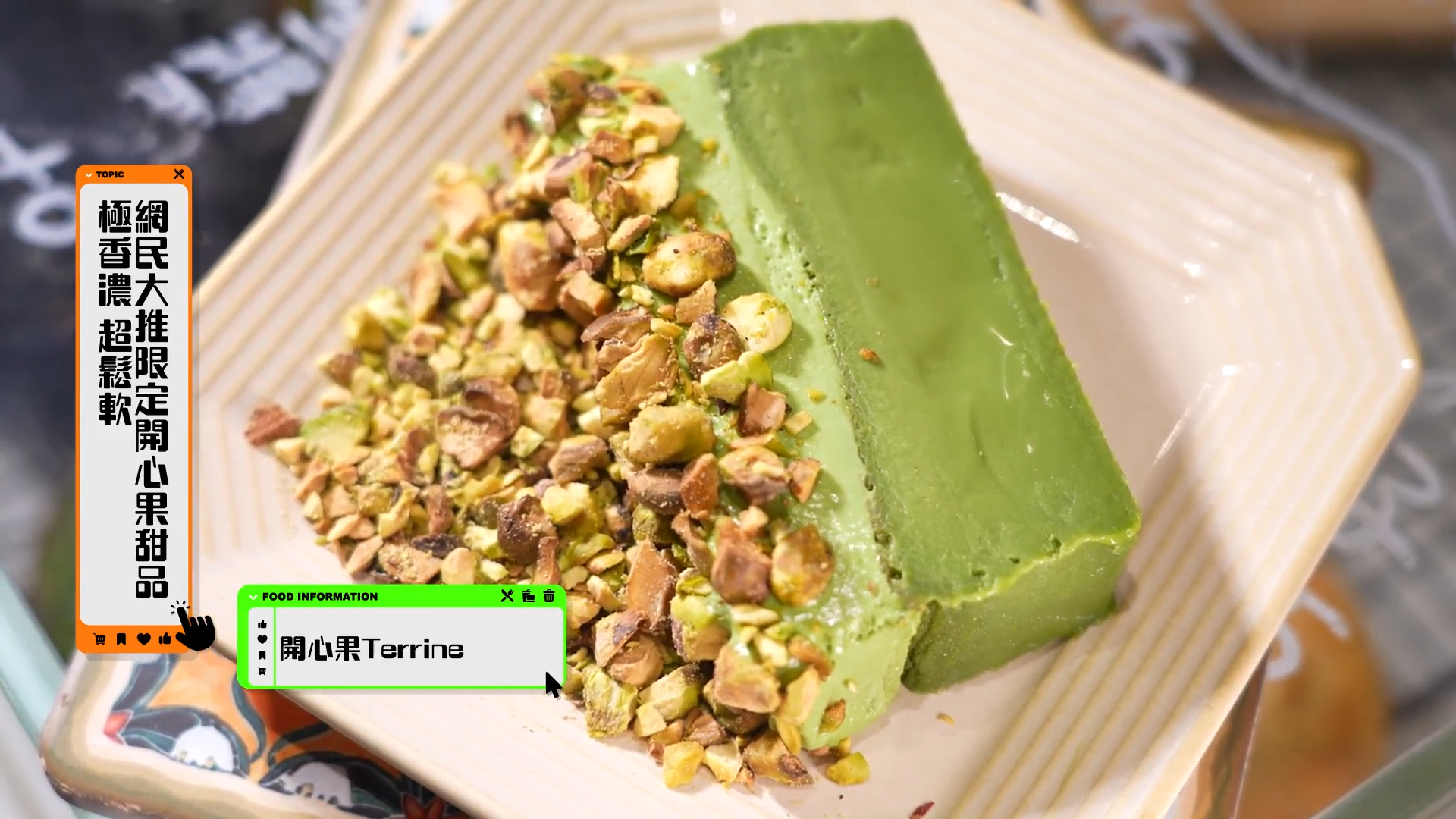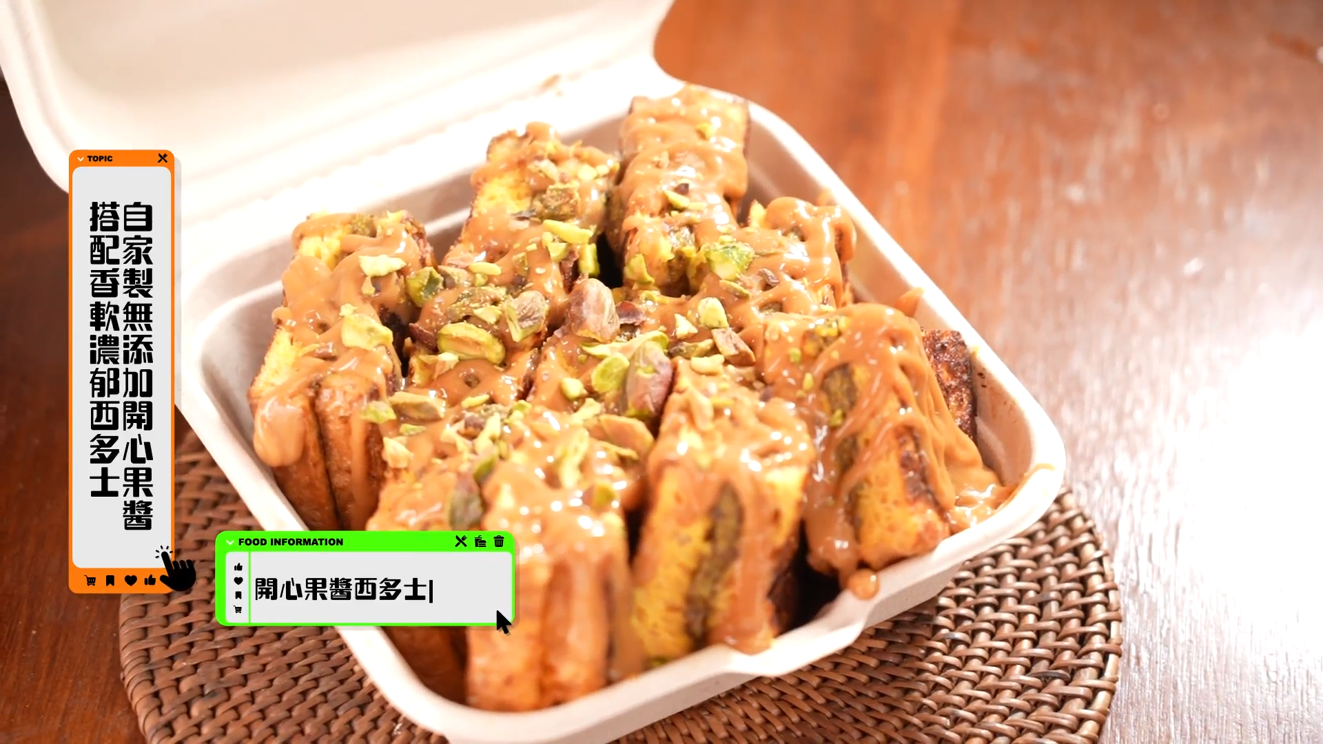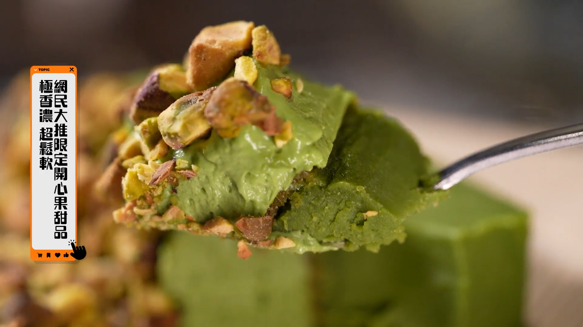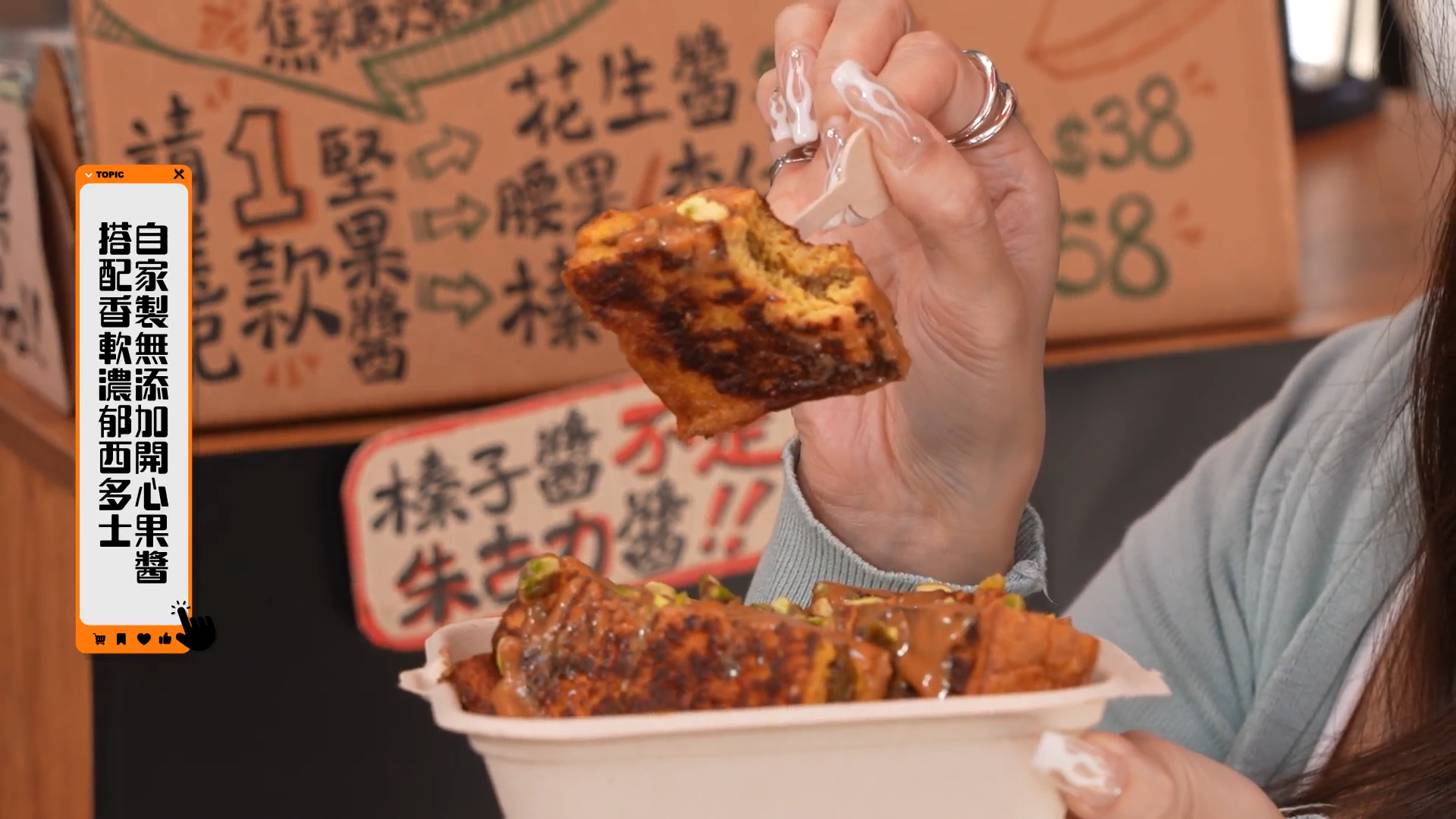 愛吃開心果的你,注意了!今集伍倩彤(Gillian)將會去網民熱推的兩間店試食開心果甜點,第一間就先石硤尾試試「開心果醬西多士」!採用自家製無添加開心果醬,搭配香軟濃郁西多士,一拿上手便香味滿滿。這款西多士以焦糖煉奶取代糖漿,Gillian試食後表示:「當中有一層滿滿的開心果醬,有啲似法式style,係比較濕潤啲和軟身啲嘅口感。」![]()