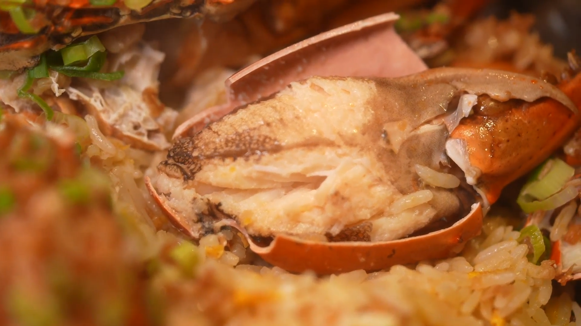 接着是招牌菜之一,充滿蟹肉的「籠仔薑米蒸蟹飯」,雄哥解釋:「因為蟹係寒涼,我哋炒個飯底會落薑去炒,減低寒涼嘅感覺。點解我哋會將蟹同飯分開蒸呢?因為蟹蒸出嘅水分太多,如果放喺飯上一齊蒸,水分會落到飯,啲飯唔係炒飯就變咗湯飯,所以會將蟹同飯分開蒸,到蒸到得果陣,再將蟹放返飯上蒸,畀適量嘅汁落到飯中,令飯有蟹嘅鮮味。」這個製法令飯變得鮮甜,而且粒粒分明,帶有蟹的油香。![]()