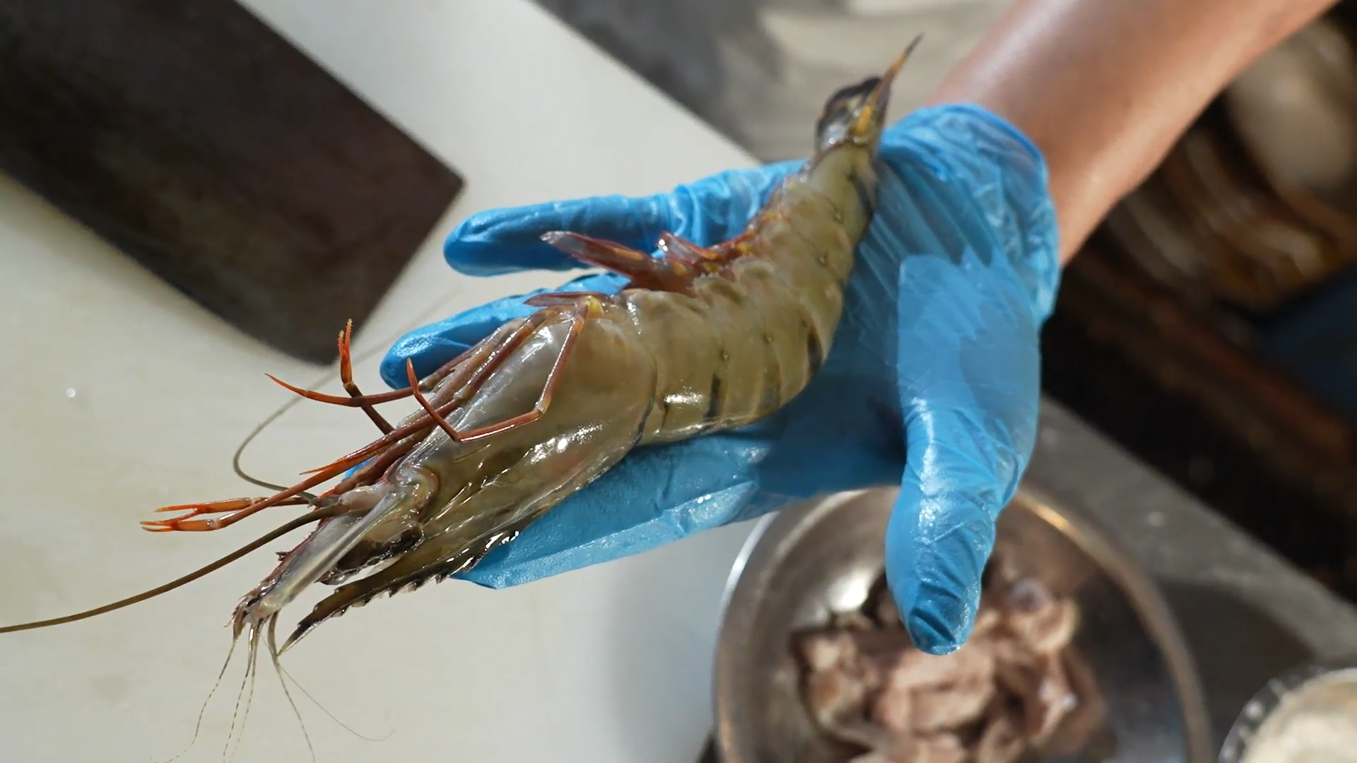 第二道經典懷舊菜為「合浦珠還」,現時坊間已經少見,採用大大隻蝦包着合桃和五花肉,再放到7成熱度的油中,「炸分半至兩分鐘左右,慢慢將火開大,再慢慢將啲油全部扯返哂出嚟,食落就無咁油膩啦。」![]()