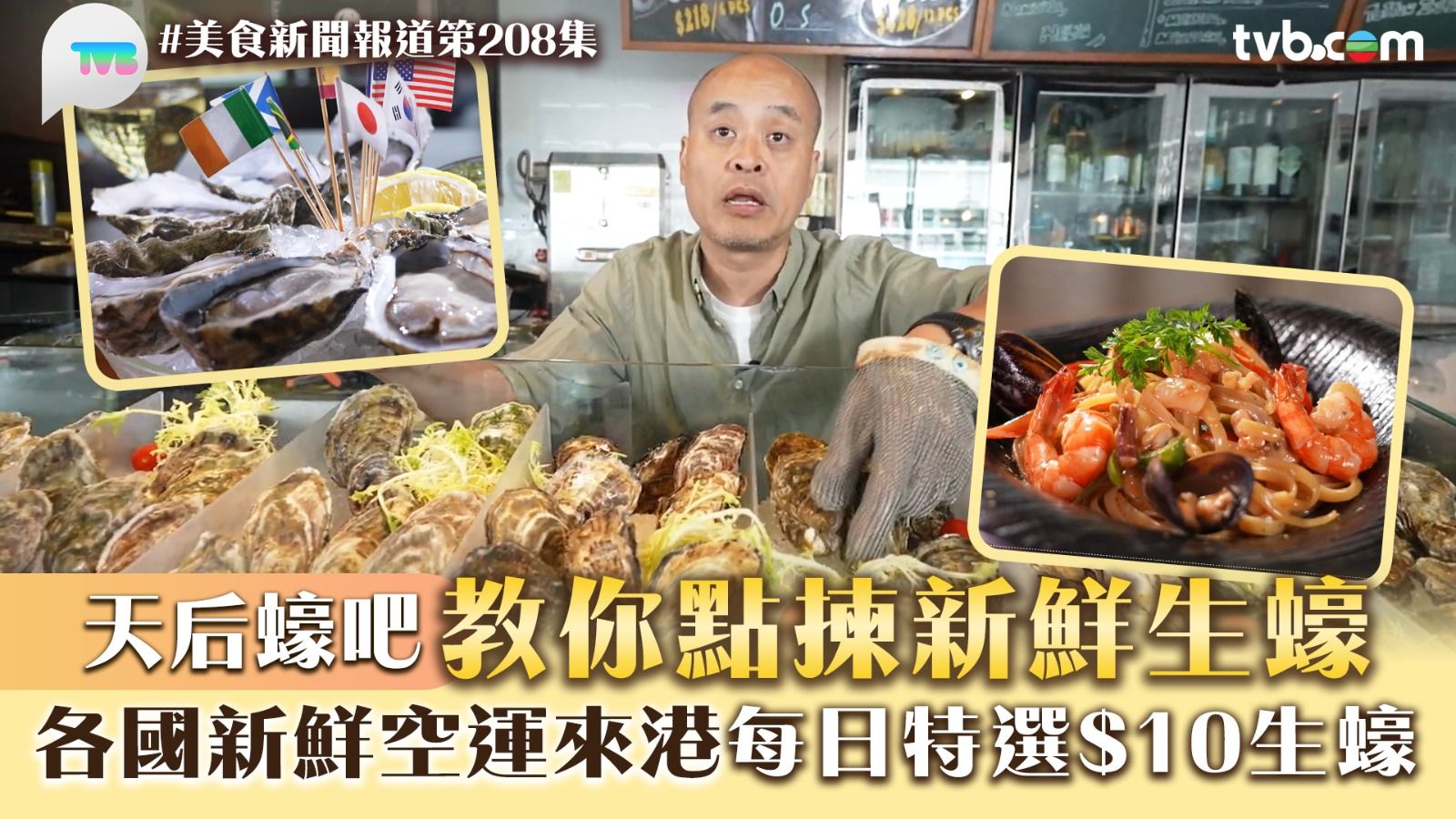 《美食新聞報道》今集「故事味緣」介紹一間主打生蠔的餐廳,有趣的地方是店主樑哥原本在酒店任職廣告宣傳,一次機緣際遇令他對生蠔產生濃厚興趣︰「嗰時要影相推廣生蠔,大廚話影完相啲生蠔都會掉。我攞嚟試發覺真係好好味……」一試難忘從此不能自拔,樑哥表示當年家族在佐敦經營餐廳,因利乘便着手賣生蠔,漸漸發展成蠔吧,他自豪的說︰「嗰時30多年前,可以話係首間即叫即開賣生蠔嘅餐廳。」節目中他講解來自美國、韓國、法國等地生蠔的獨特風味,還教大家如何分辨是否新鮮,其實很簡單打開蠔殼,只要見到裙邊位會收縮便是新鮮。樑哥的蠔吧每日都有不同品種的10蚊蠔推出,並非將貨就價,經常幫襯街坊都猛讚鮮味「隻隻都識郁」。