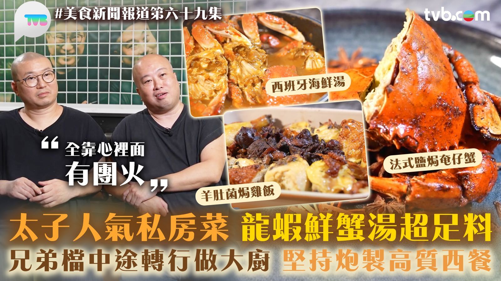今集《美食新聞報道》的故事味緣主角是兩位人氣私房菜的餐廳主理人,哥哥Jim和弟弟Chris。Jim主外Chris主內負責廚房內部。這間私房菜位於大南街,主打非傳統西式料理,可以由顧客決定,又可以廚師發辦,上到西班牙的海鮮湯,下至中式焗蟹,都一一可以品嘗到。