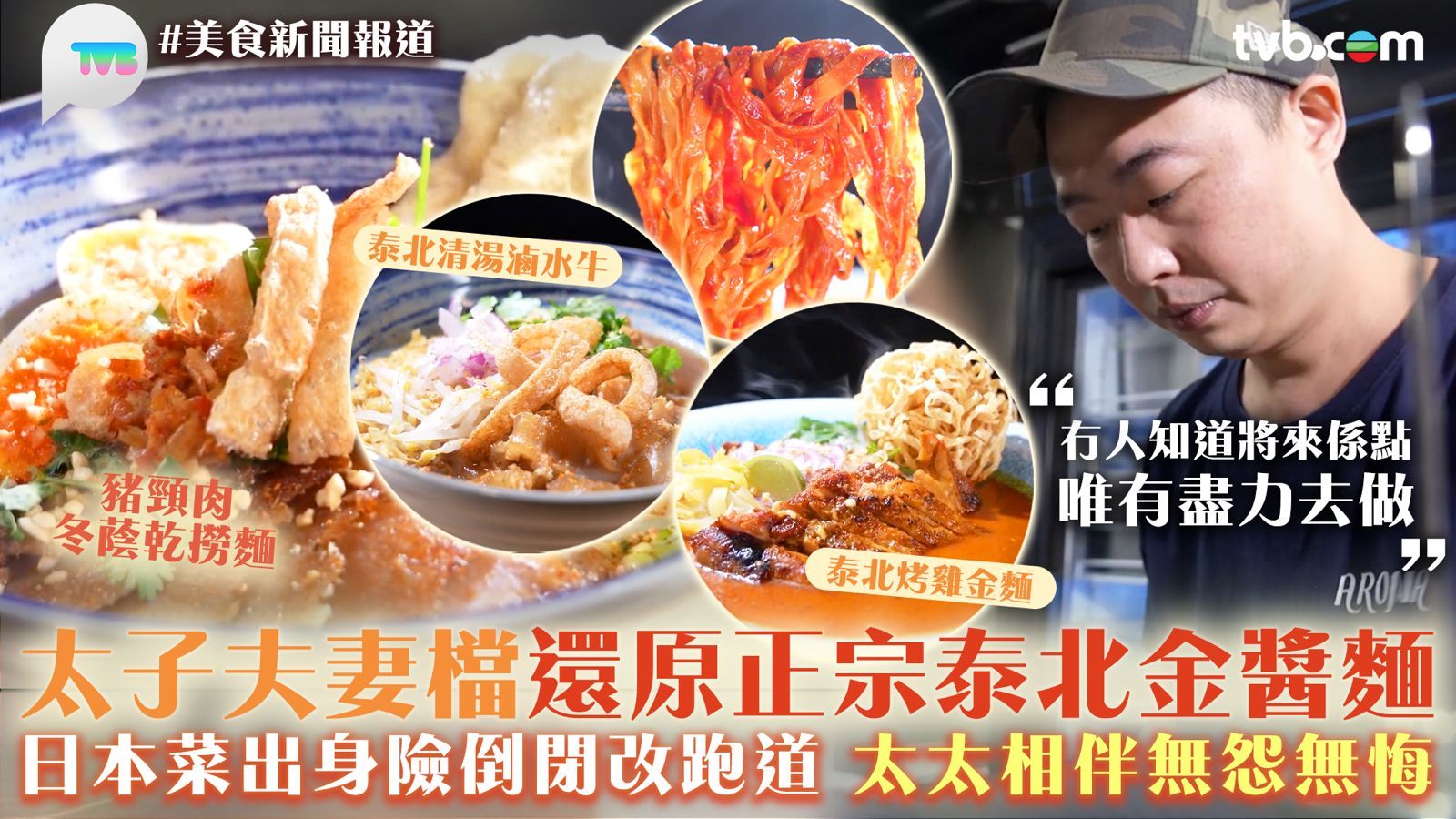 烤豬頸肉冬蔭乾撈麵,是泰國街頭常見的美食,牛丸用新鮮全蛋麵加上自製冬蔭幹撈醬汁製作,惹味十足。牛丸指:「唔好諗太多,盡力去做,因為你唔盡力去做嘅話,未必會有個好嘅結果。」