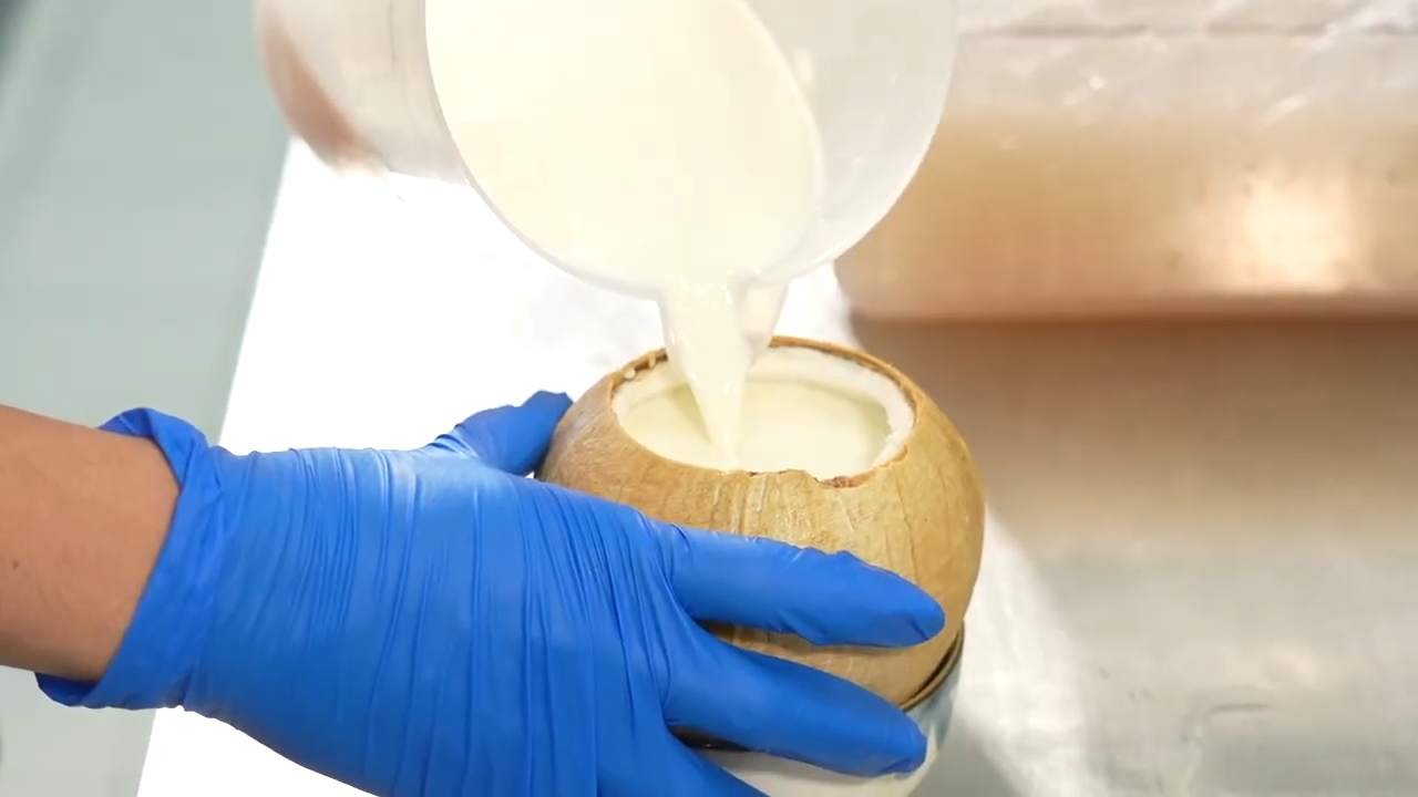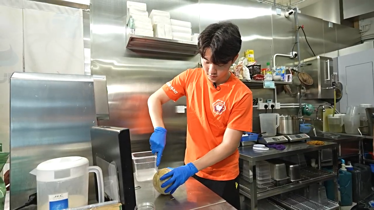 店內選用新鮮椰皇,清甜的椰水、椰肉及椰殼可用來製作不同的甜品。例如店中招牌甜品桃膠椰皇燉蛋白,使用半自動開椰機將椰皇破開,並留起椰皇水,將鮮奶、椰子水、蛋白及少量的糖加入椰殼中,出爐後再加入桃膠,水汪汪的桃膠椰皇燉蛋白就完成。最火爆的產品之一芒芒UFO,則用純椰皇水做的果凍打底,加入厚切芒果、煙韌小丸子及椰奶,口感層次豐富。而龍眼桂花椰子水,裡面有一粒粒的椰子肉,桂花凍,龍眼肉與椰子水,也深受不少顧客喜愛。Andy每日都努力工作鑽研新產品,不過只要他一有時間,就會回到母親的糖水舖幫手。儘管母子倆對於產品的理念不同,但亦會尊重對方攜手進退。![]()