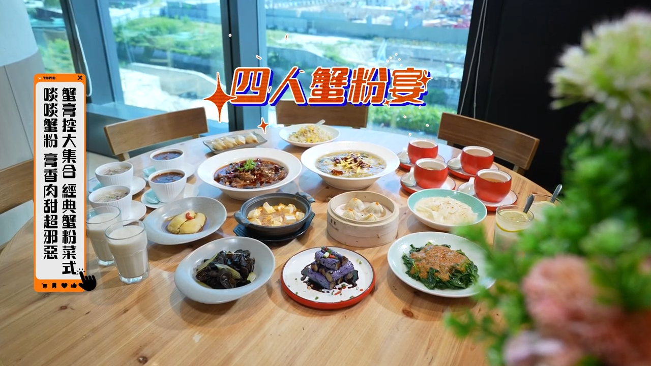 鞏姿希Krystl則體驗四人蟹粉宴,蟹粉小籠包,咬下去蟹油及湯汁在口中爆開,再加上濃郁蟹粉,吃起來滿口留香。蟹粉豆腐,金黃色相當誘人,豆腐與蟹粉勾芡得恰到好處,入口即化。宋嫂魚羹,啖啖魚肉鮮味,吃起来有蟹羹的鲜美,鲜嫩润滑。宮廷醬茄子,清爽中帶有絲絲甜味,非常開胃。![]()