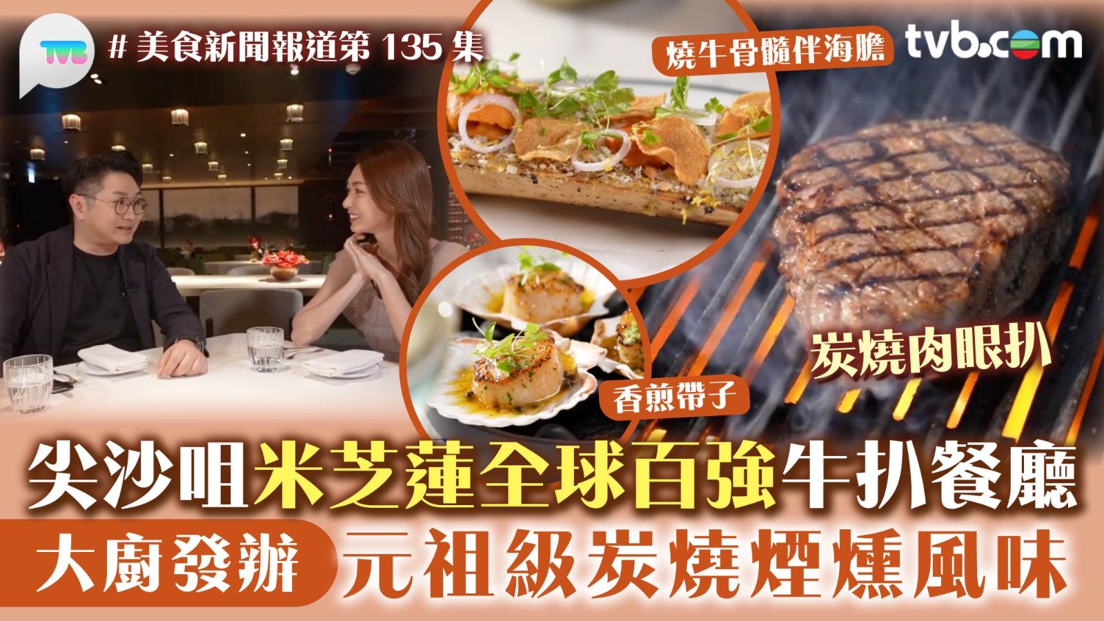 今集《美食新聞報道》「大廚發辦」的主角是有32年經驗的行政總廚阿Ken劉銘佳,他帶黃嘉雯(Carmaney)來到尖沙咀一間入選過全球最佳牛扒的米芝連餐廳品嚐牛扒。「炭燒牛骨髓(Bone Marrow)」連多士都是炭燒,牛骨髓上面仲搭配一個海膽,入口好似啫喱,是經過低溫烹煮之後才可以做到的風味,搭配海膽多士外脆裡嫩!「炭燒肉眼扒」選擇的是super prime扒,100隻牛得1隻!三分熟肉香十足,搭配三款自製醬料,仲有紅木炭+備長炭燒獨有的煙燻香味!「香煎帶子」以焦糖化黃油煎製,水瓜搭配北海道帶子,鮮美清新!
