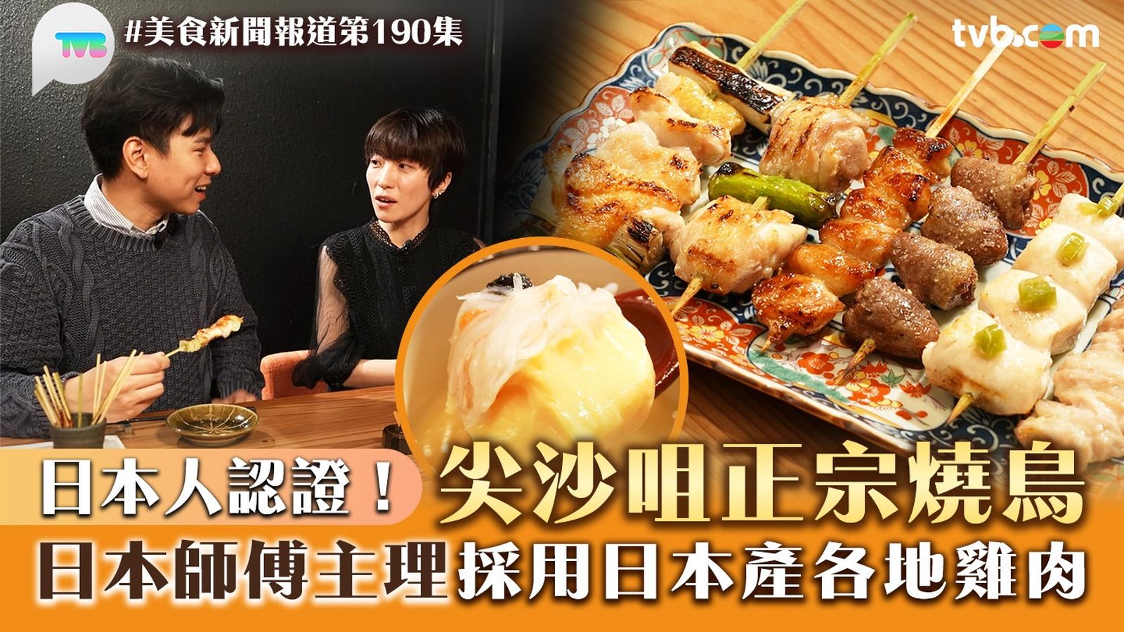《美食新聞報道》今集由居港日本人靜香帶蔡景行(行仔)去到尖沙咀,品嚐由正宗日本師傅主理的「燒鳥」!全部雞肉來自自家農場,款式多又新鮮,還能吃到日本各地雞肉。先試鮮甜無比的雞湯茶碗蒸,再食鹽燒雞柳、雞心、免治雞肉棒等串燒,每道令人吃到停不了口!行仔還試了香港少見的雞屁股及雞頸,油脂豐富,意外地好食!餐廳堅持採用日本食材,連靜香都說有到家鄉的味道!