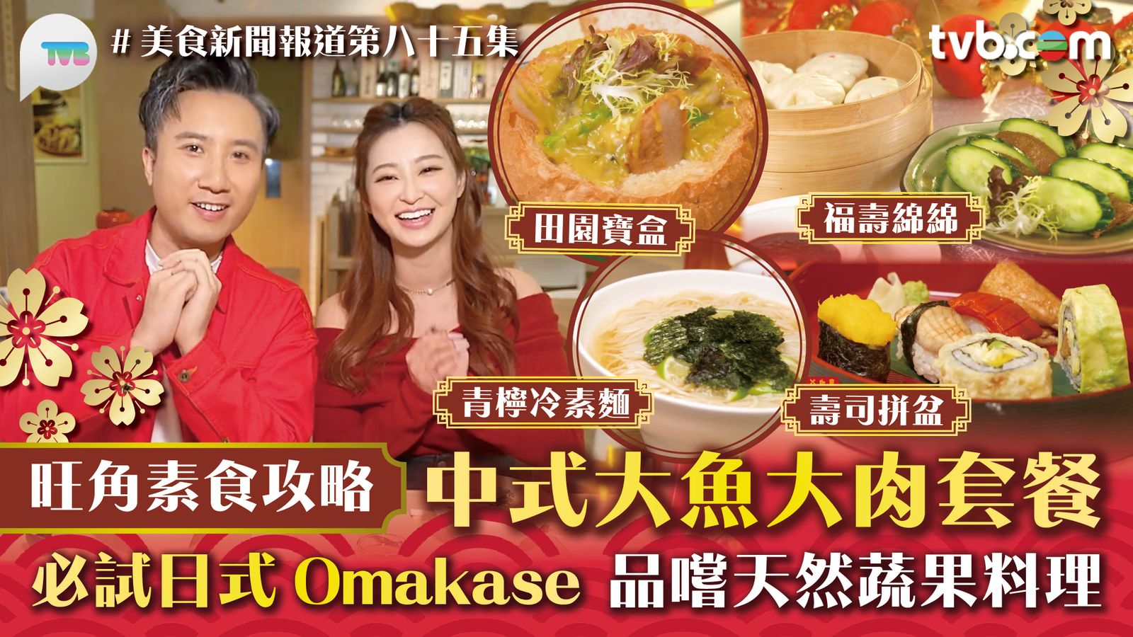 大年初一,由「素食達人」陳浩然(Elvis)帶路搵食,孖伍倩彤(Gillian)尋找素食美味!傳統素食粵菜,在喜慶節日都會吃到的「福壽綿綿」,荷包饃放入外脆內軟的素乳豬、清爽解膩的青瓜,口感層次豐富;田園寶盒,搭配不同時令蔬菜、咖喱、素肉,入口是濃郁椰子香味,素肉一絲絲的口感,吸滿更多醬汁極入味;泰式明爐魚,素魚的餡料包含素肉漿、蒟蒻,紫菜,愈吃愈開胃!