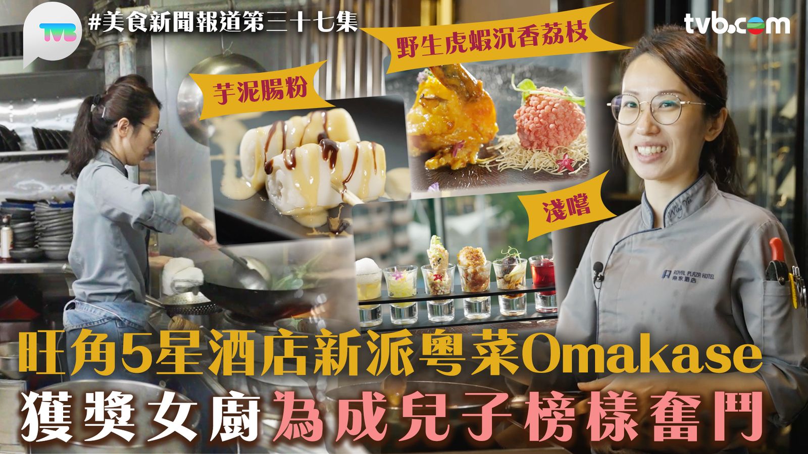 小儀當年為了找目標和技能給自己,於是入讀中華廚藝學院。現時她是餐廳助理主廚,在這間主打新派粵菜Omakase的餐廳工作了8年,以傳統形式去製作賣相精緻的菜式。因為小儀指自己本身比較瘦,「好多時拎重嘢同拋鑊都差啲,自己抽空練習多啲。」她由低做起,累積經驗,並參加了很多烹飪節目和飲食比賽。