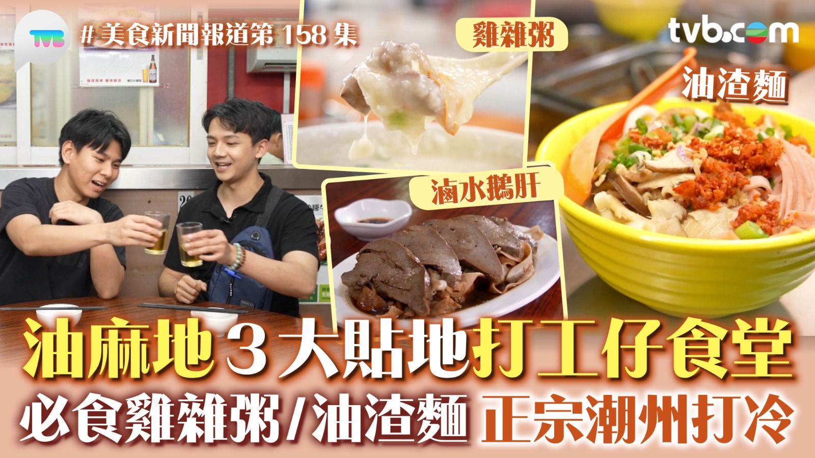 今集《美食新聞報道》就由蔡景行(行仔)孖施焯日(Arthur)推介「打工仔飯堂」,據統計全香港打工仔中有12.1%喜愛在油尖旺區上班,兩位主持到油麻地歎足多款美食。打工仔的早餐可以由一碗正宗的雞雜粥開始,材料包括雞心、雞肝、雞腎及雞腸。貴妃雞飯,雞肉嫩滑極入味。
