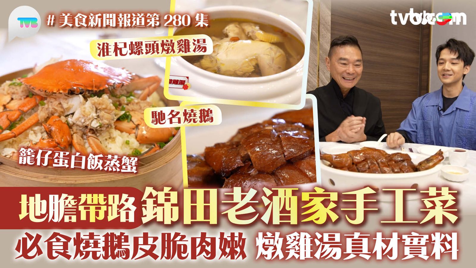 節目去到另一節,就有元朗地膽鄧達智( William )聯同主持施焯日(Arthur)帶路,去到位於錦田的老酒家探店,還大膽交給「廚師發辦」,首先上菜是「一哥燒鵝王」,賣相油光十足,皮下油脂豐富,入口肉嫩油香十足,肉汁溢出,非常脆口;「淮杞螺頭燉雞湯」現身,這款湯健脾養胃,又能益精明目,入口非常清甜,而且非常足料,必然一試;「奇妙拔絲骨」上菜,夾起來拉絲畫面極治癒,排骨肉味濃郁,入口香甜又清脆;殺手鐧「籠仔蛋白飯蒸蟹」上菜,蟹汁流入白飯,入口配搭蒜粒薑粒,簡直非常鮮甜,就連蟹肉都很嫩滑,絕對不能錯過!