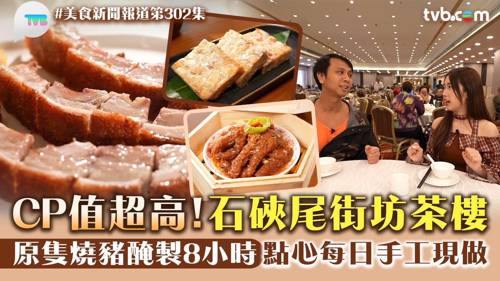 《美食新聞報道》今集由深水埗「地膽」江師傅帶林映暉(暉哥)搵食,品嚐石硤尾街坊茶樓的手工點心!茶樓每日點心都是新鮮現製,江師傅推介特大蝦餃,一啖可以吃到三隻鮮蝦;乾蒸牛肉,與平日食的牛肉球略有不同,口感較紮實。江師傅亦推介招牌燒腩,以原隻燒豬醃製8小時的燒腩,坊間買少見少;還有鑊氣十足的石鍋海鮮炒飯、粒粒飽滿的鵪鶉蛋燒賣,款式多樣,性價比超高!