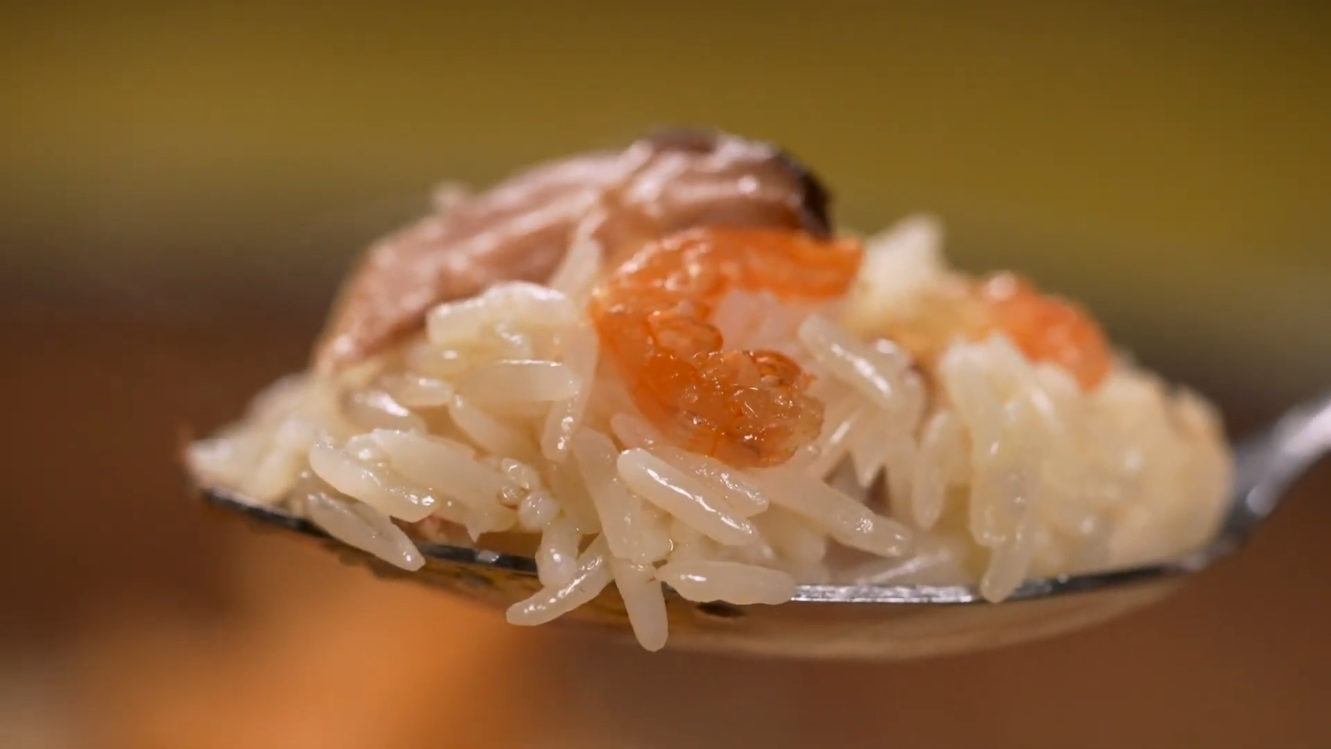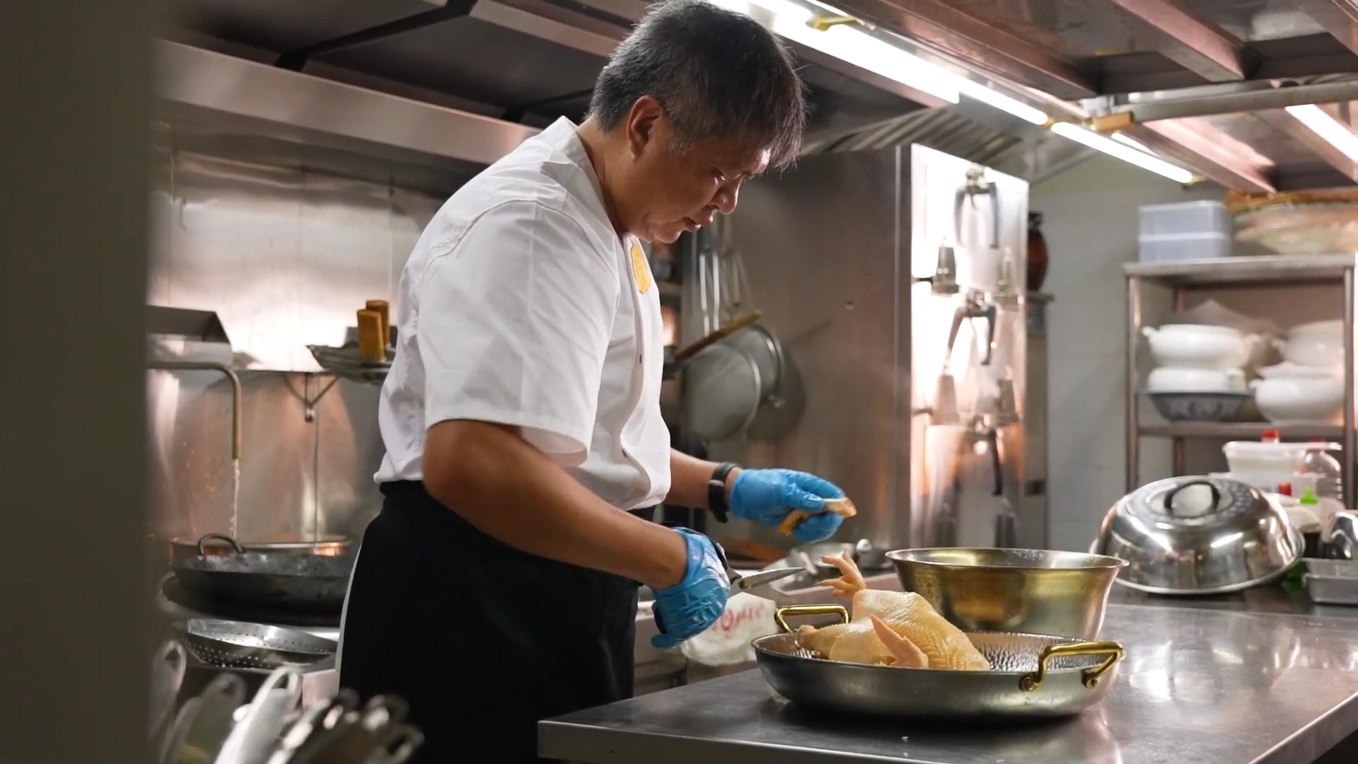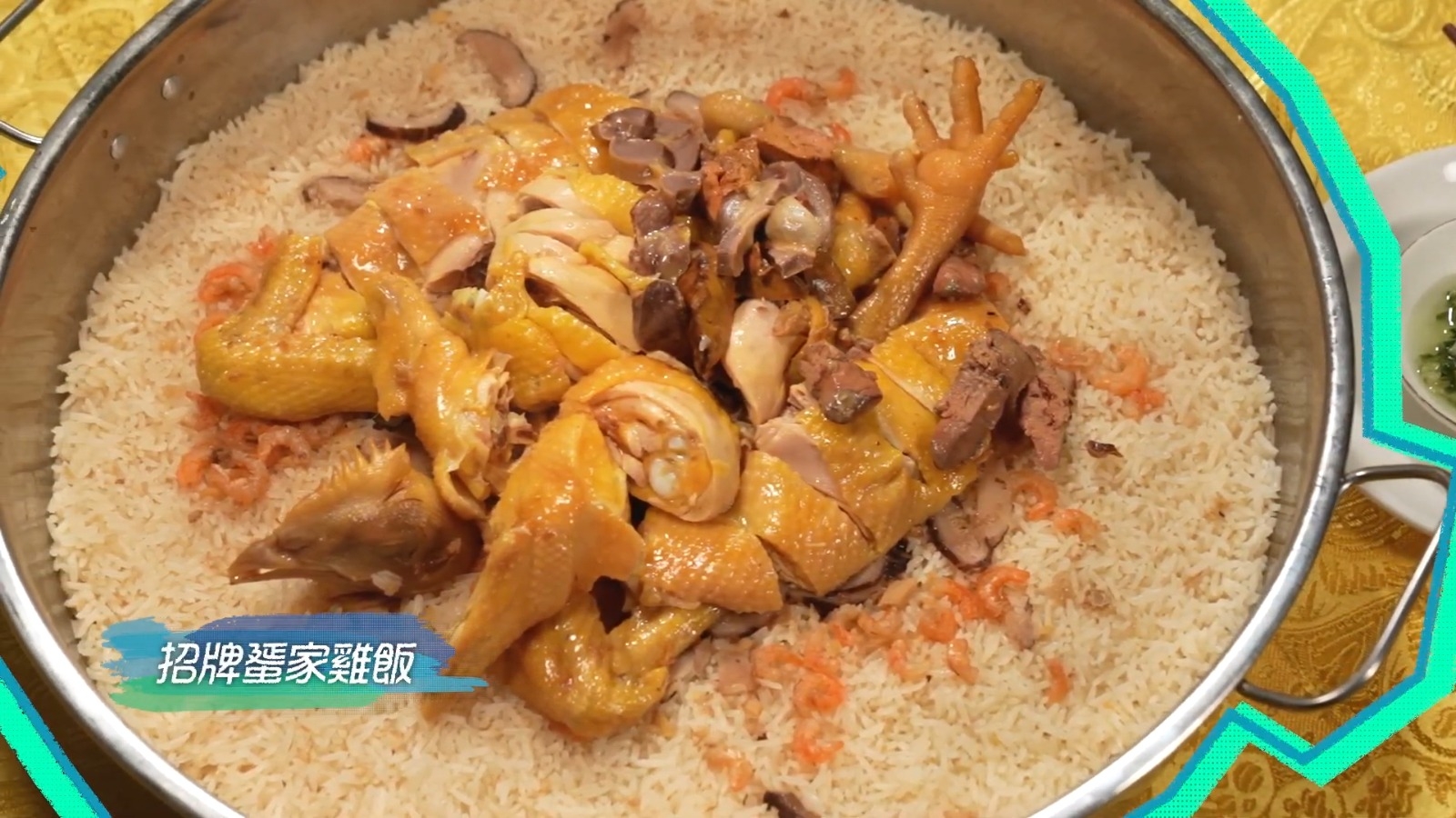 招牌蜑家雞飯,這個飯全靠用雞的鮮味,「醃完再洗走鹽,切薑䓤頭粒,落油炒切薑䓤頭粒製作汁,再用汁醃雞。放入蒸櫃蒸40分鐘,喺飯上面加上菇同雞汁去蒸,等米吸收雞嘅營養,最後放雞上去。」輝哥指要大時大節先有雞食,因為少人養雞,那時日日都食魚和海鮮,能夠有肉食超開心。![]()