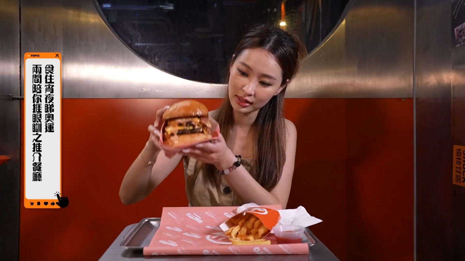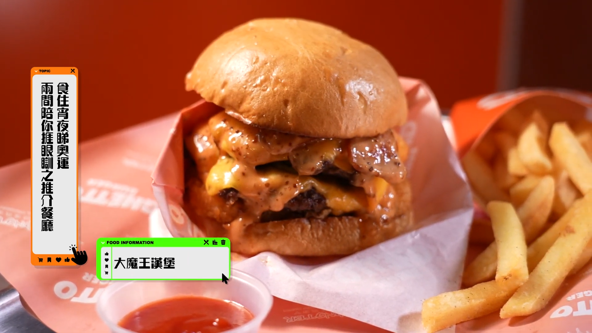 營業時間至凌晨2點,Gillian先試食大魔王漢堡,份量十足。當中有兩層牛肉、芝士、整塊煙肉,還有仲有薯餅。「薯餅勁脆,無被肉汁同醬浸淋。牛肉很鬆軟,勁JUICY,口感豐富有層次,芝士半融狀態,食落去更『邪惡』。」